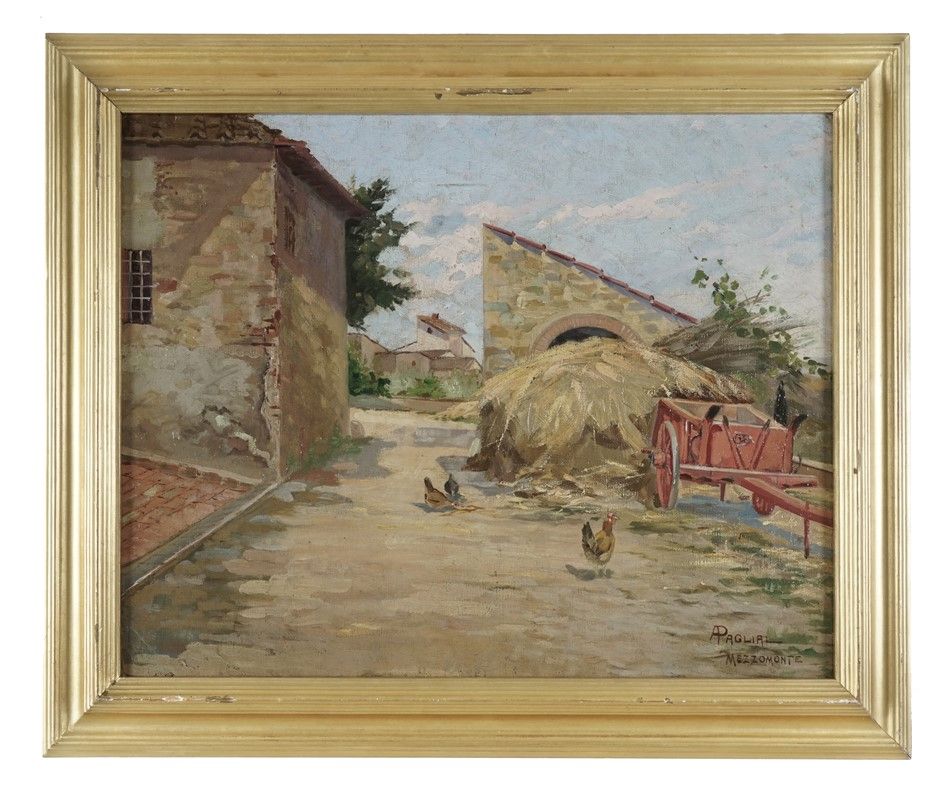 Olio su tela. cm 37,5x46,5. Firmato e titolato in basso a destra. Etichetta poco leggibile applicata al verso del telaio.