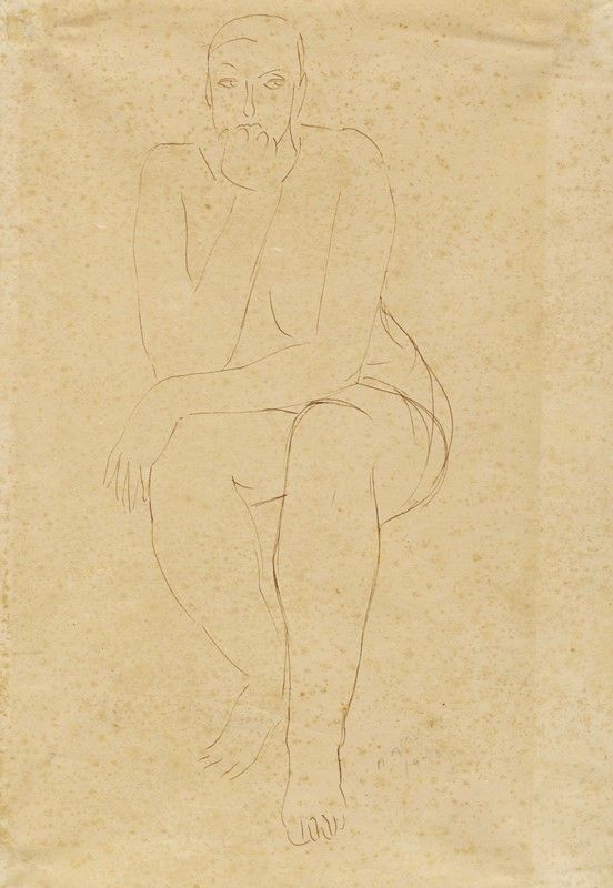 Penna e inchiostro di china bruno su carta. mm 315x228. Firmato e datato a matita in basso a destra. Opera accompagnata da autentica della Fondazione Marino Marini di Pistoia con codice archivio "760" in data 22 Febbraio 2017.