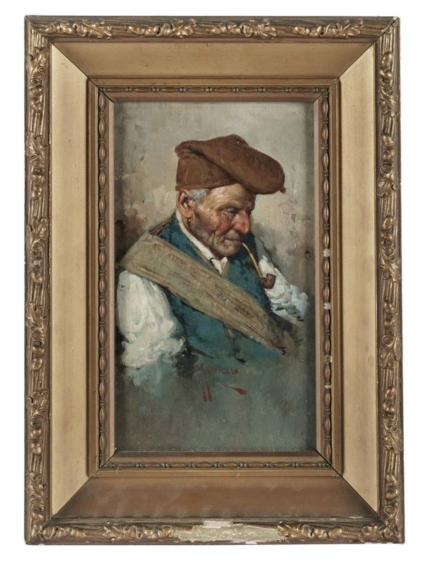 Olio su tela applicata a cartone. cm 27,5x16,5. Firmato in basso al centro.