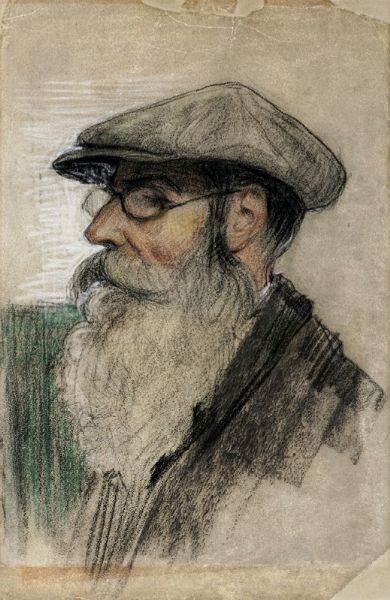 ADOLFO SCARSELLI : Ritratto maschile di profilo con cappello e occhiali.  - Asta Arte Antica, Moderna e Contemporanea [parte II] - Associazione Nazionale - Case d'Asta italiane
