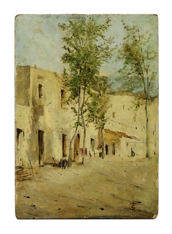 Olio su tavoletta. cm 23,6x16,7. Monogrammato in basso a destra. Coppia di iscrizioni al verso: "Questo quadro è opera del pittore Telemaco Signorini", vicino ad un timbro a ceralacca; "Dichiaro che quest'opera è autentica di Telemaco Signorini" iscritta al centro e firmata da Michele Biancale.