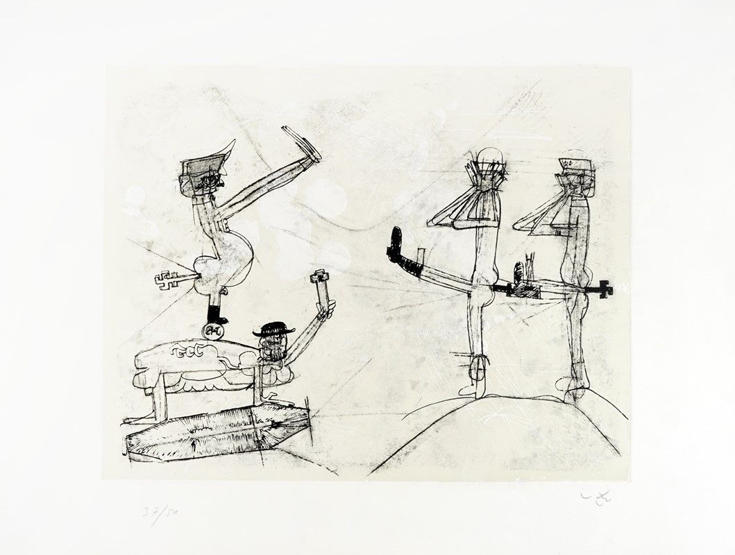 Acquatinta. mm 375x475. Foglio: mm 530x712. Firma a matita in basso a destra e tiratura in basso a sinistra. Es. 37/50.