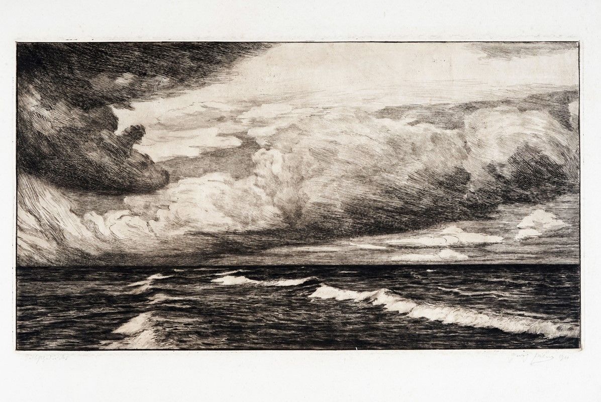 Acquaforte su carta vergellata. mm 245x450. Foglio: mm 362x495. Firmata e datata a matita in basso a destra. Iscrizione poco leggibile a matita in basso a sinistra.