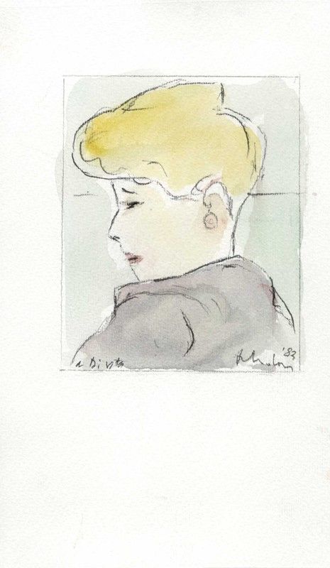 Acquerello e carboncino su cartoncino. mm 220x130. Firma e data in basso a destra e dedica ad Eraldo Di Vita in basso a sinistra. Opera acquistata a cartoncino nero, al cui verso sono presenti la controfirma e la data.