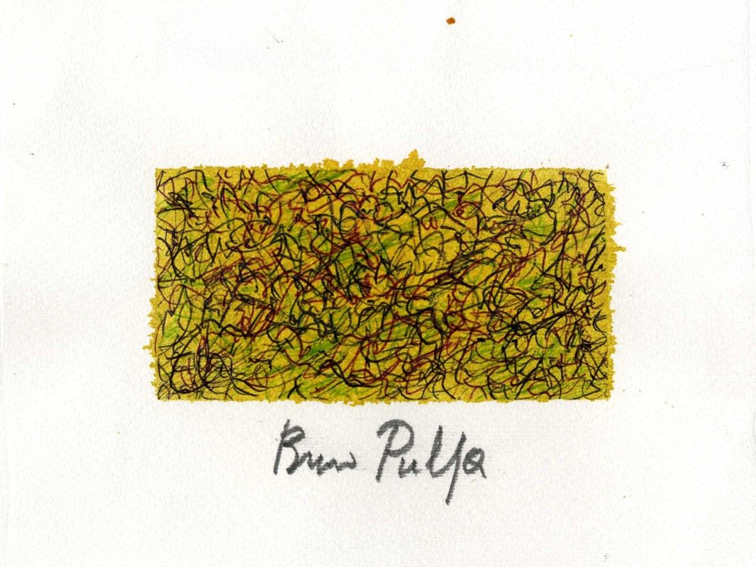 Acquerello e penne a sfera su cartoncino. mm 160x210. Firma a matita in basso al centro. Al verso doppio timbro a inchiostro nero de "Mail Art - Archivio Eraldo Di Vita", iscritto l'indirizzo del critico d'arte e "Grazie della fiducia e della musica", con controfirma dell'artista. Targhetta applicata con i dati dell'opera e francobollo "La natura è colore" con timbro.