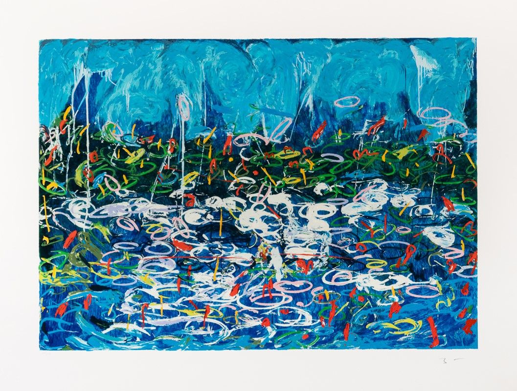 Serigrafia materica su carta greve. mm 745x980. Foglio: mm 1000x1200. Firma a matita in basso a destra e tiratura in basso a sinistra. Sotto alla tiratura è presente il timbro a secco" Stamperia d'Arte Paoliarte". Es. 110/199.