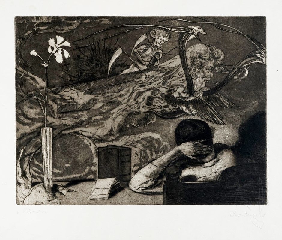 Acquaforte e acquatinta. mm 240x320. Foglio: mm 350x425. Firmata a matita in basso a destra, titolata a matita in basso a sinistra.