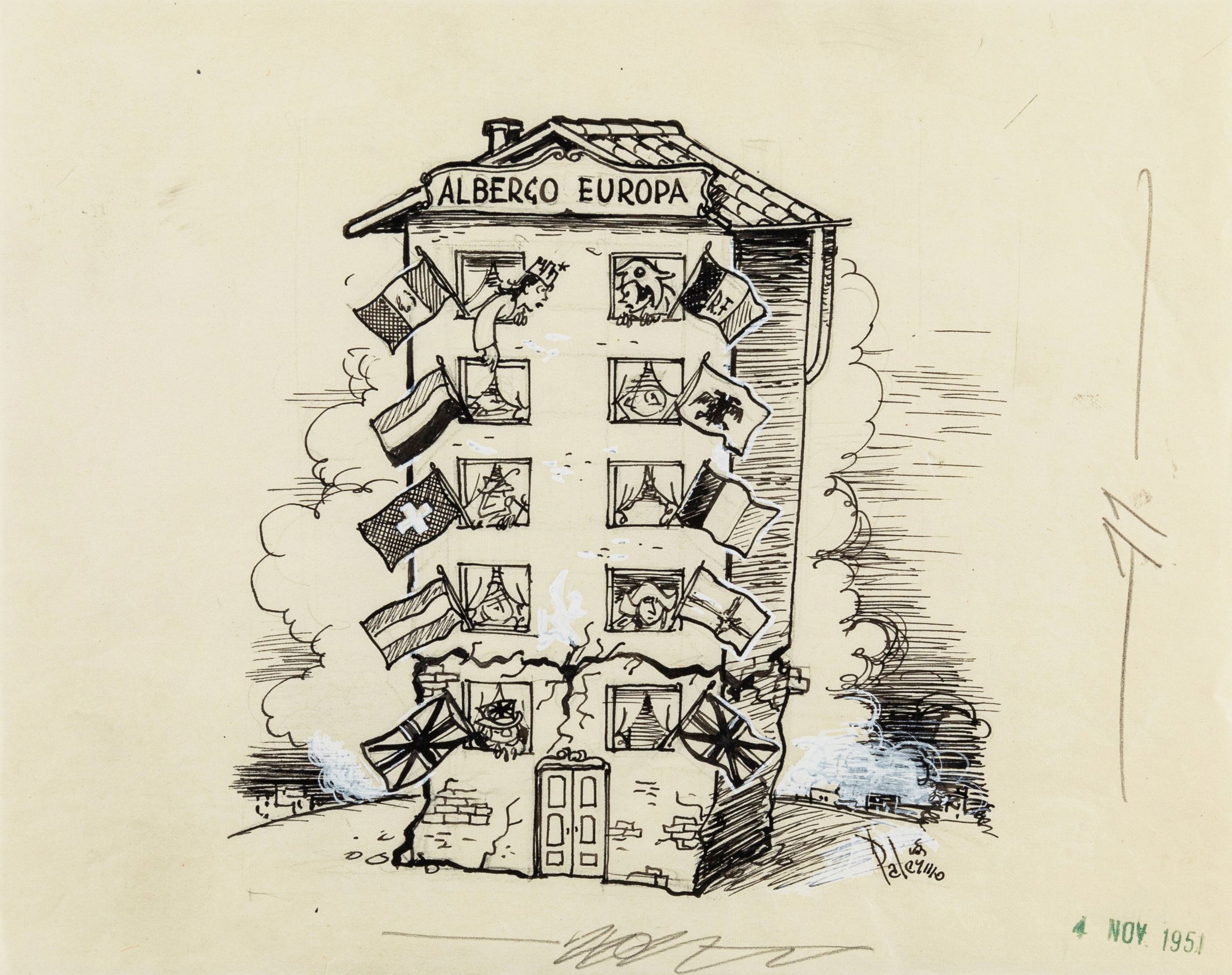 1951 Illustrazione originale realizzata da Palermo per il Bertoldo nel 1951. Firmata.