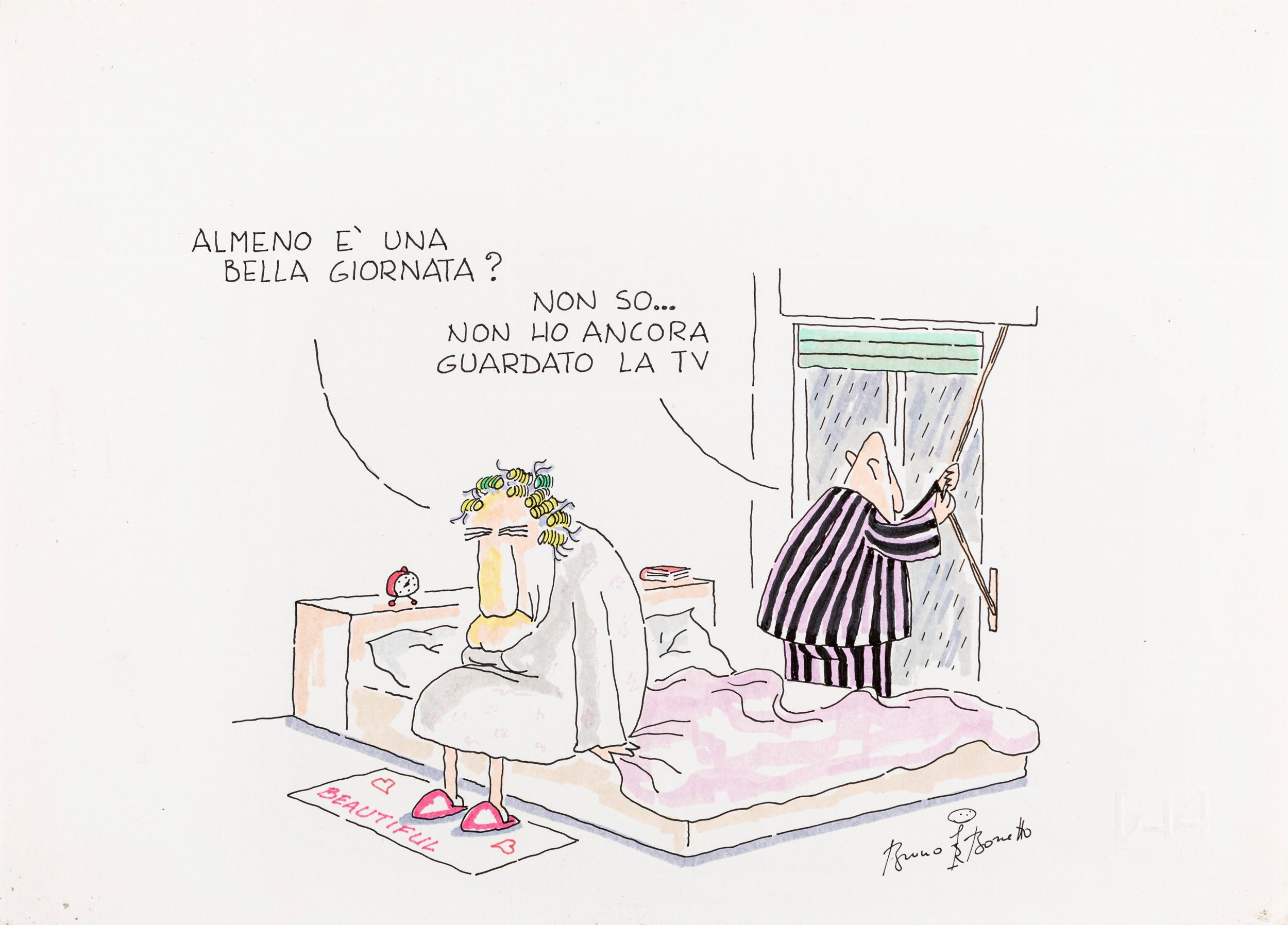 Bruno Bozzetto : Almeno è una bella giornata?  - Asta Fumetti: Tavole e Illustrazioni Originali - Associazione Nazionale - Case d'Asta italiane