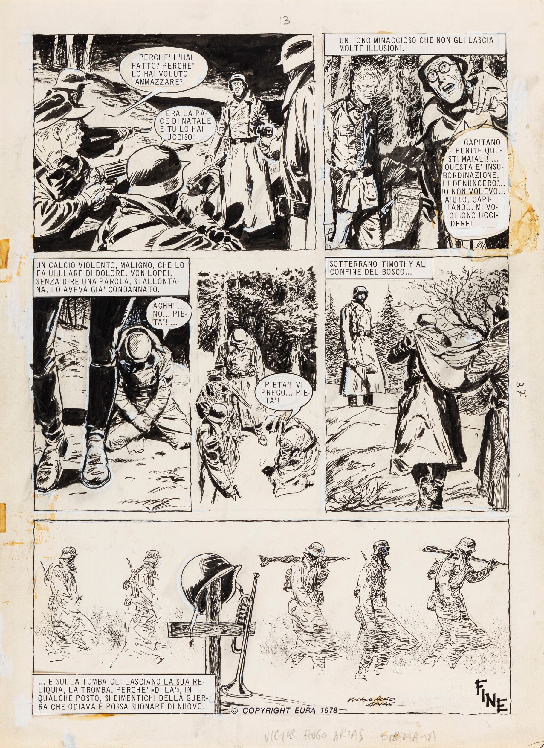 1978 Tavola originale realizzata da Arias per la pagina finale di 'Ardenne Blues', storia edita per la prima volta in Italia su Lanciostory n. 28 nel 1978. Firmata e datata.