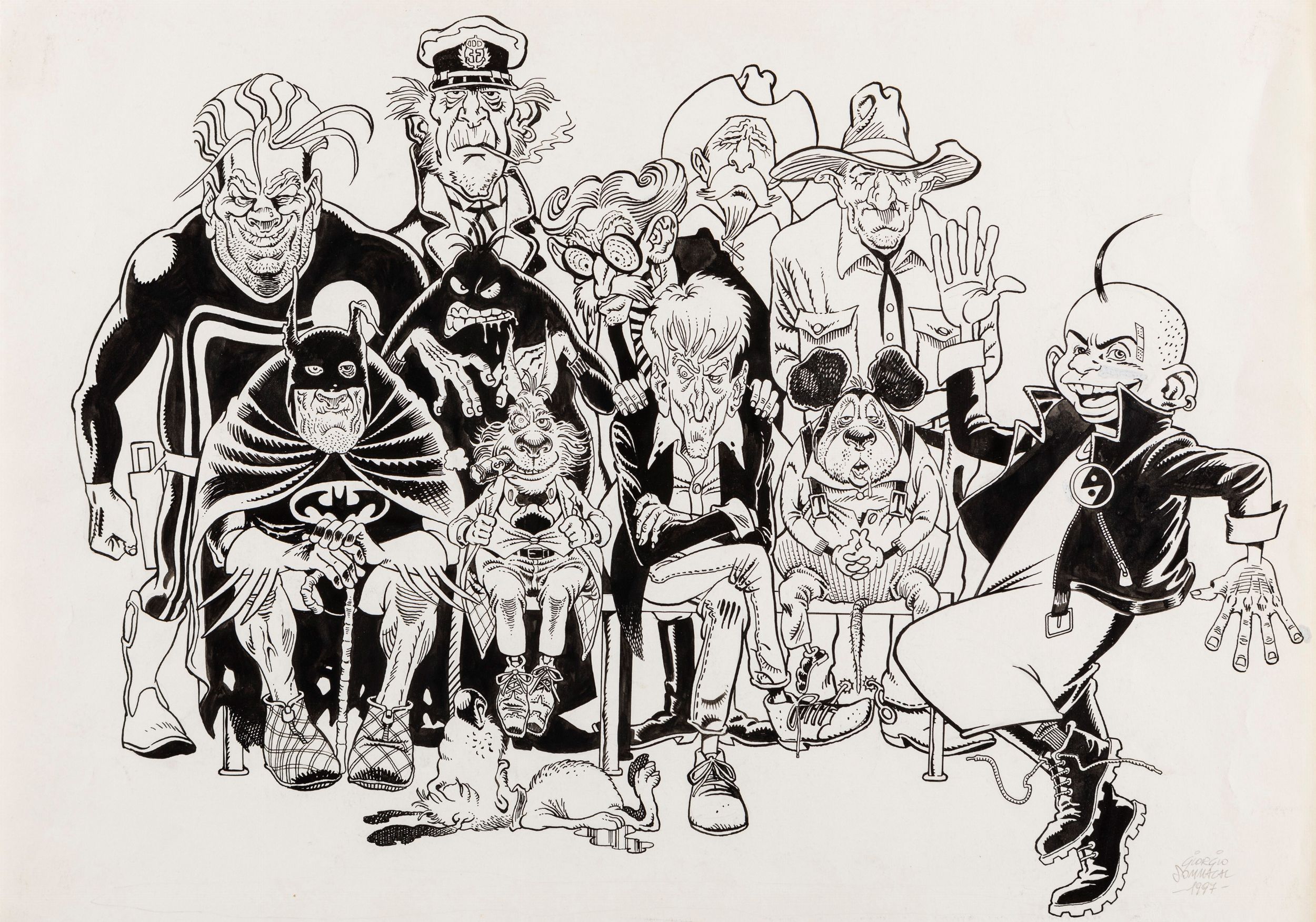 1997 Originale di copertina realizzato da Sommacal per Ganesh n. 5, supplemento a Chaos edito da Pari Comics nel 1997. Lieve piega all'angolo superiore destro. Firmato e datato.