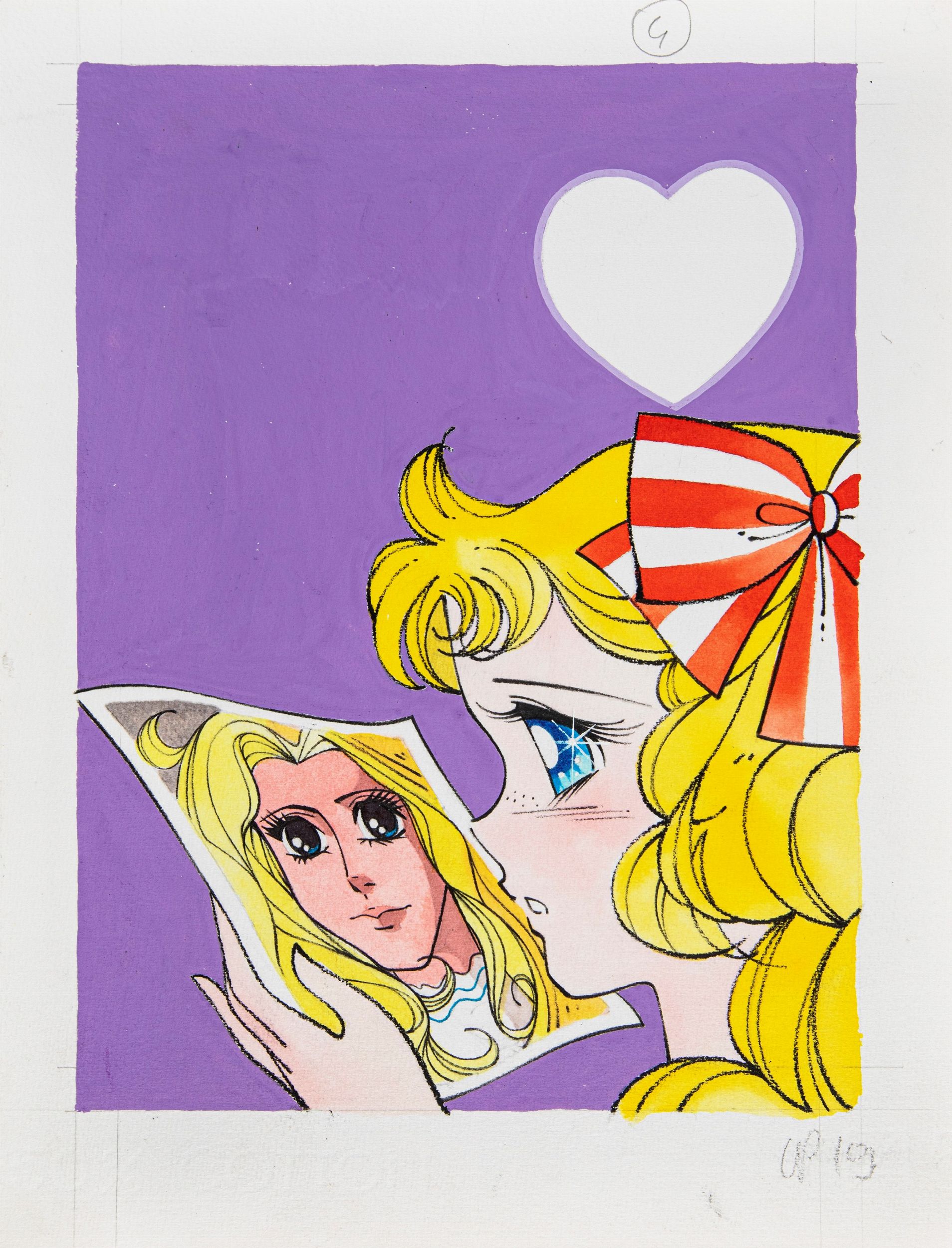 pastelli, acquerello e tempera su cartoncino, 23,5 x 31 cm 1980 Originale di copertina realizzato da Frigerio per Candy Candy n. 19, edito dalla Fabbri Editore nel 1980. Personaggio creato dalle due autrici giapponesi Kyoko Mizuki (testi) e Yumiko Igarashi (disegni) Candy Candy nacque come manga nel 1975 e nel 1976 come anime di 115 episodi, la Fabbri Editore fu la prima a portare in Italia la versione a colori (censurata) del fumetto originale raccolta in 77 numeri.