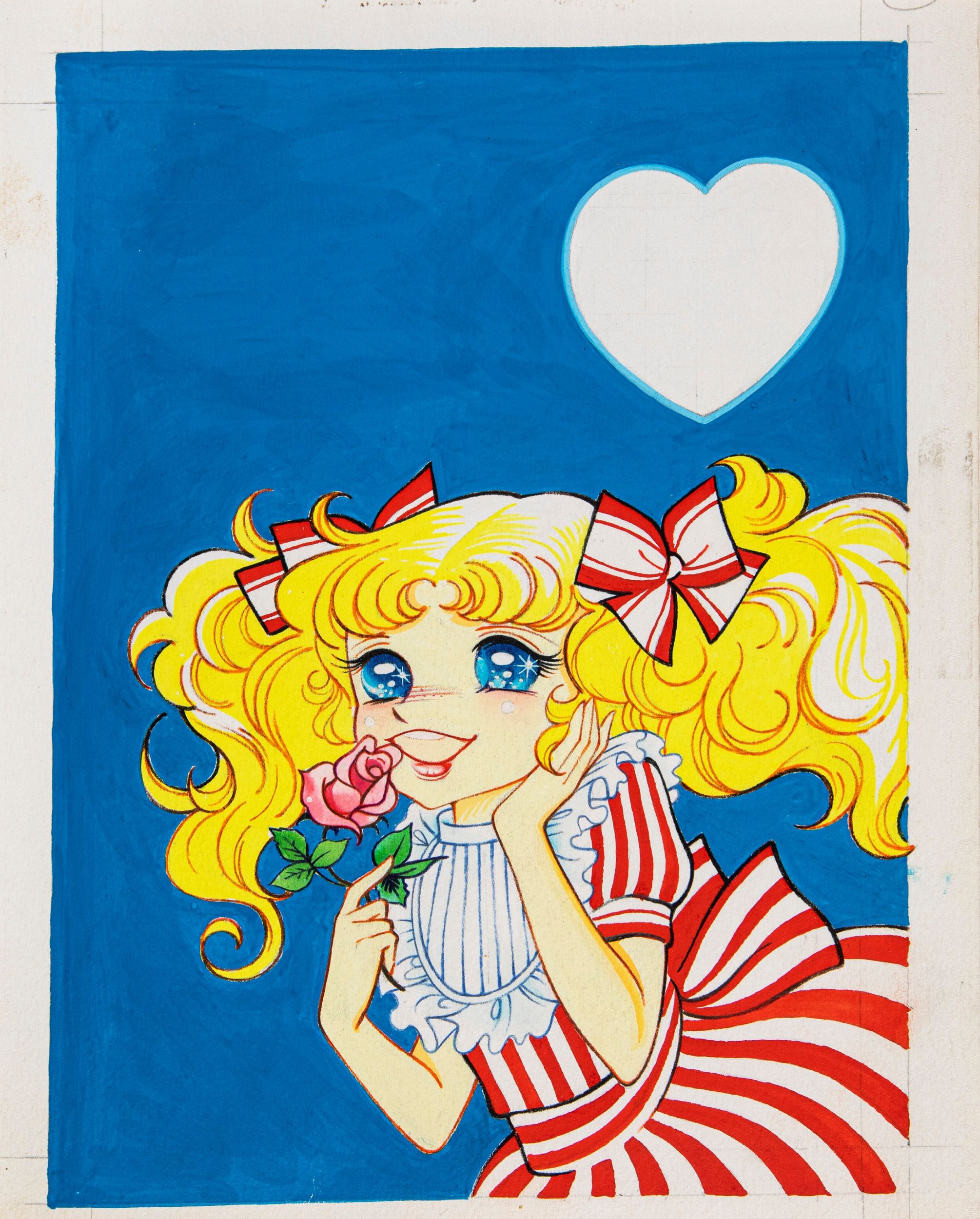 pastelli, acquerello e tempera su cartoncino, 22 x 27,5 cm 1980 Originale di copertina realizzato da Frigerio per Candy Candy n. 1, edito dalla Fabbri Editore nel 1980. Personaggio creato dalle due autrici giapponesi Kyoko Mizuki (testi) e Yumiko Igarashi (disegni) Candy Candy nacque come manga nel 1975 e nel 1976 come anime di 115 episodi, la Fabbri Editore fu la prima a portare in Italia la versione a colori (censurata) del fumetto originale raccolta in 77 numeri.