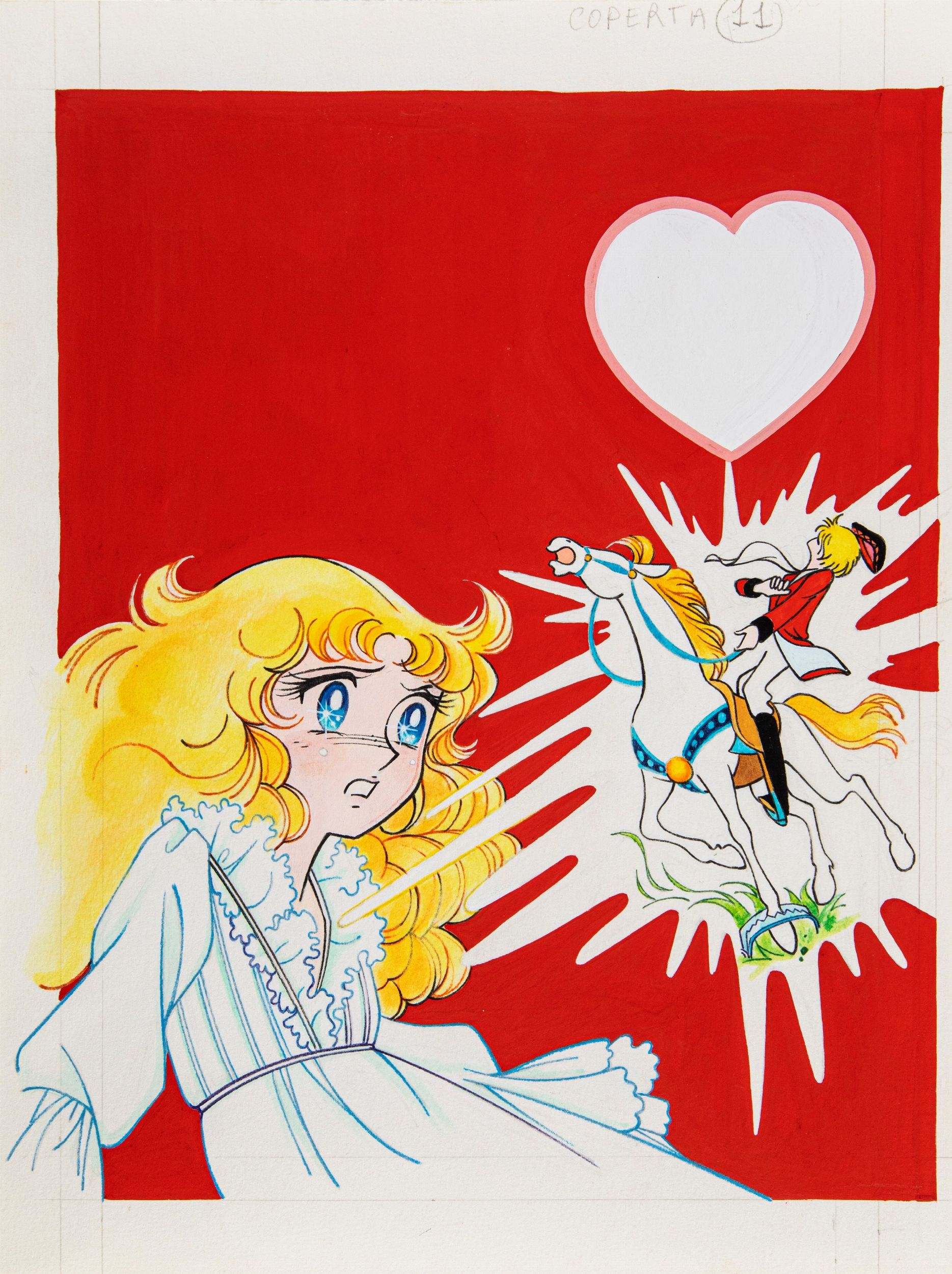 pastelli, acquerello e tempera su cartoncino, 22,5 x 29,5 cm 1980 Originale di copertina realizzato da Frigerio per Candy Candy n. 11, edito dalla Fabbri Editore nel 1980. Personaggio creato dalle due autrici giapponesi Kyoko Mizuki (testi) e Yumiko Igarashi (disegni) Candy Candy nacque come manga nel 1975 e nel 1976 come anime di 115 episodi, la Fabbri Editore fu la prima a portare in Italia la versione a colori (censurata) del fumetto originale raccolta in 77 numeri.