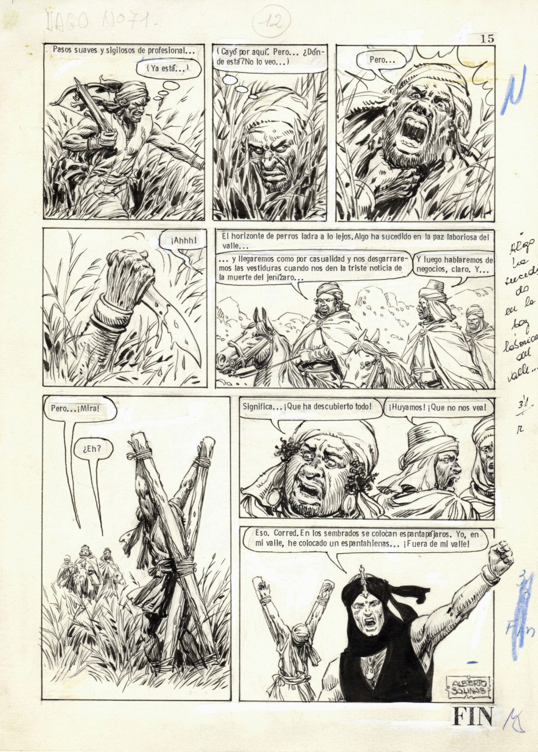 1987 Tavola originale realizzata da Salinas per la pag. 12 di 'El valle del Jenizaro', settantunesimo episodio di Dago edito per la prima volta su Nippur Magnum n. 66 del 1987. Firmata.