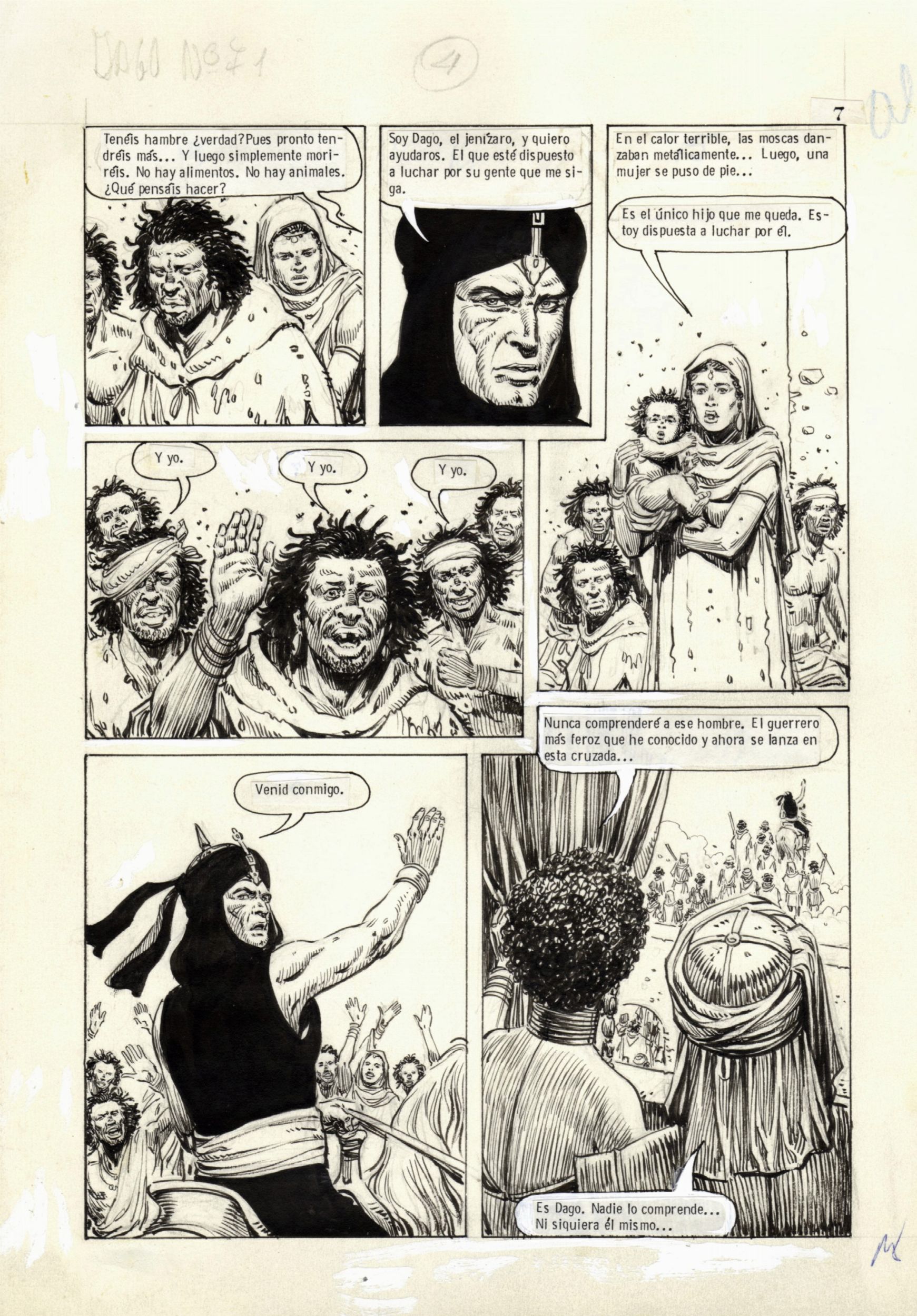 1987 Tavola originale realizzata da Salinas per la pag. 4 di 'El valle del Jenizaro', settantunesimo episodio di Dago edito per la prima volta su Nippur Magnum n. 66 del 1987.