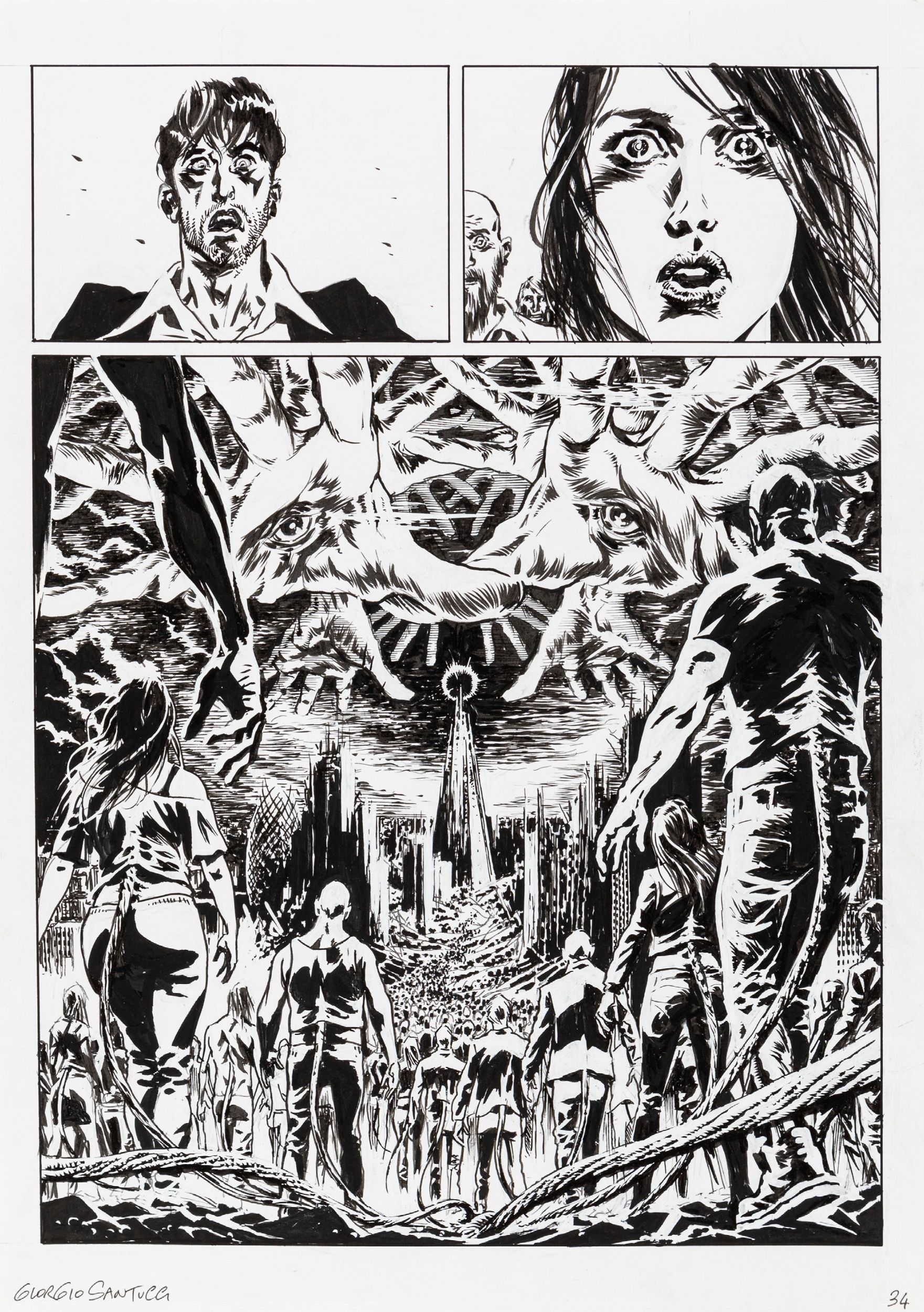 2017 Tavola originale realizzata da Santucci per 'La fine dell'oscurità', edita su Dylan Dog n. 374 a pag. 34 dalla Bonelli nel 2017. Firmata.