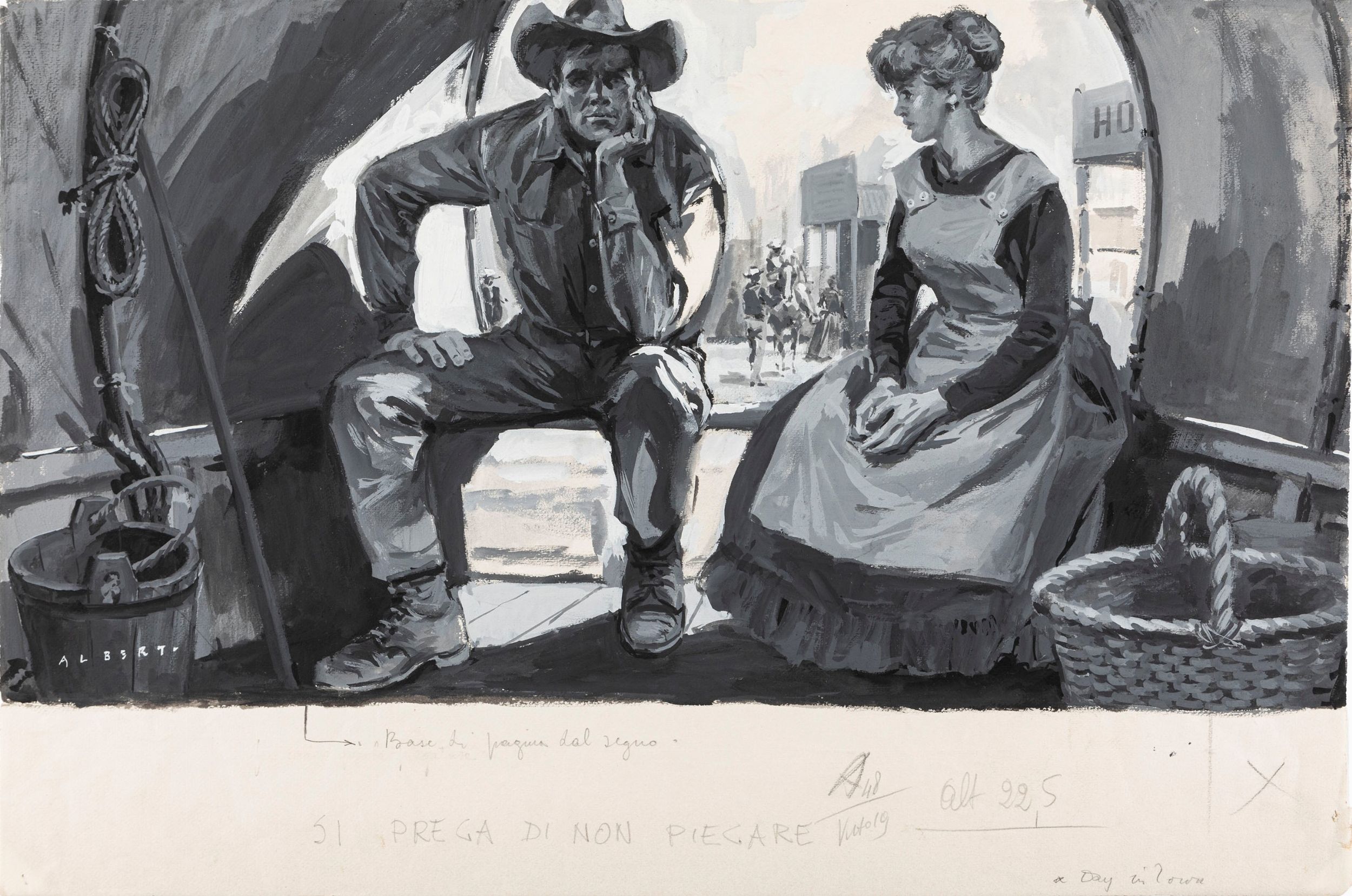 anni 40 Illustrazione originale realizzata da Albertarelli alla fine degli anni '40 per il Vittorioso. Un'immagine di grande impatto ad opera del padre italiano del fumetto western. Firmata.