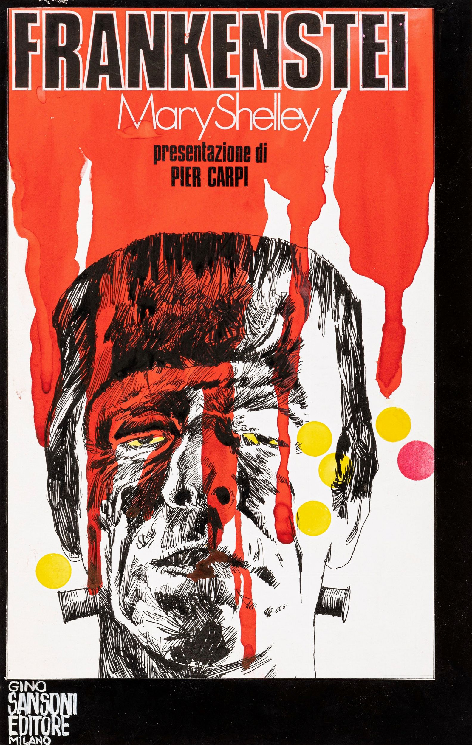1970 Originale di copertina realizzato da Rostagno per il romanzo 'Frankenstein' di Mary Shelley, edito nella collana Il Mistero n. 2 dalla Sansoni Editore nel 1970.