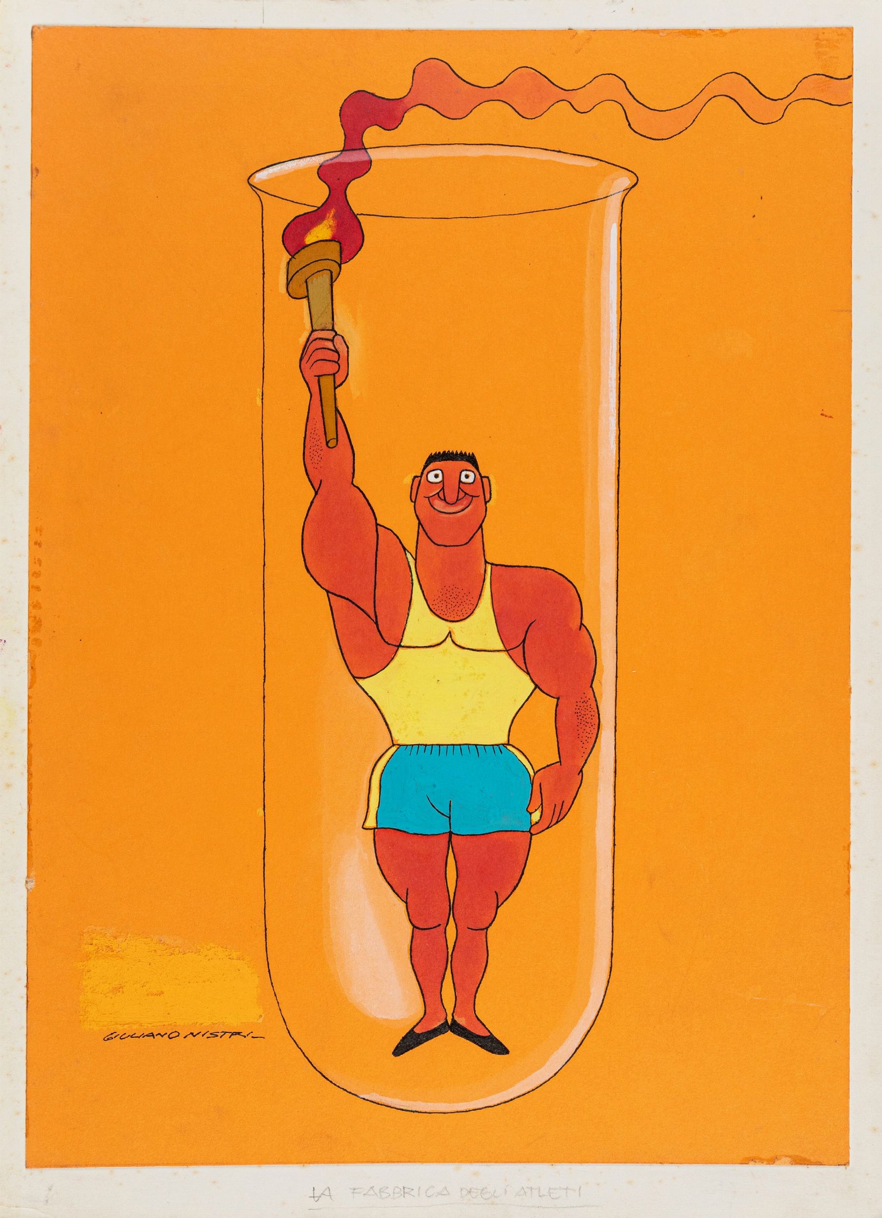 Giuliano Nistri : Il Borghese - La fabbrica degli atleti  - Asta Fumetti: Tavole e Illustrazioni Originali - Associazione Nazionale - Case d'Asta italiane