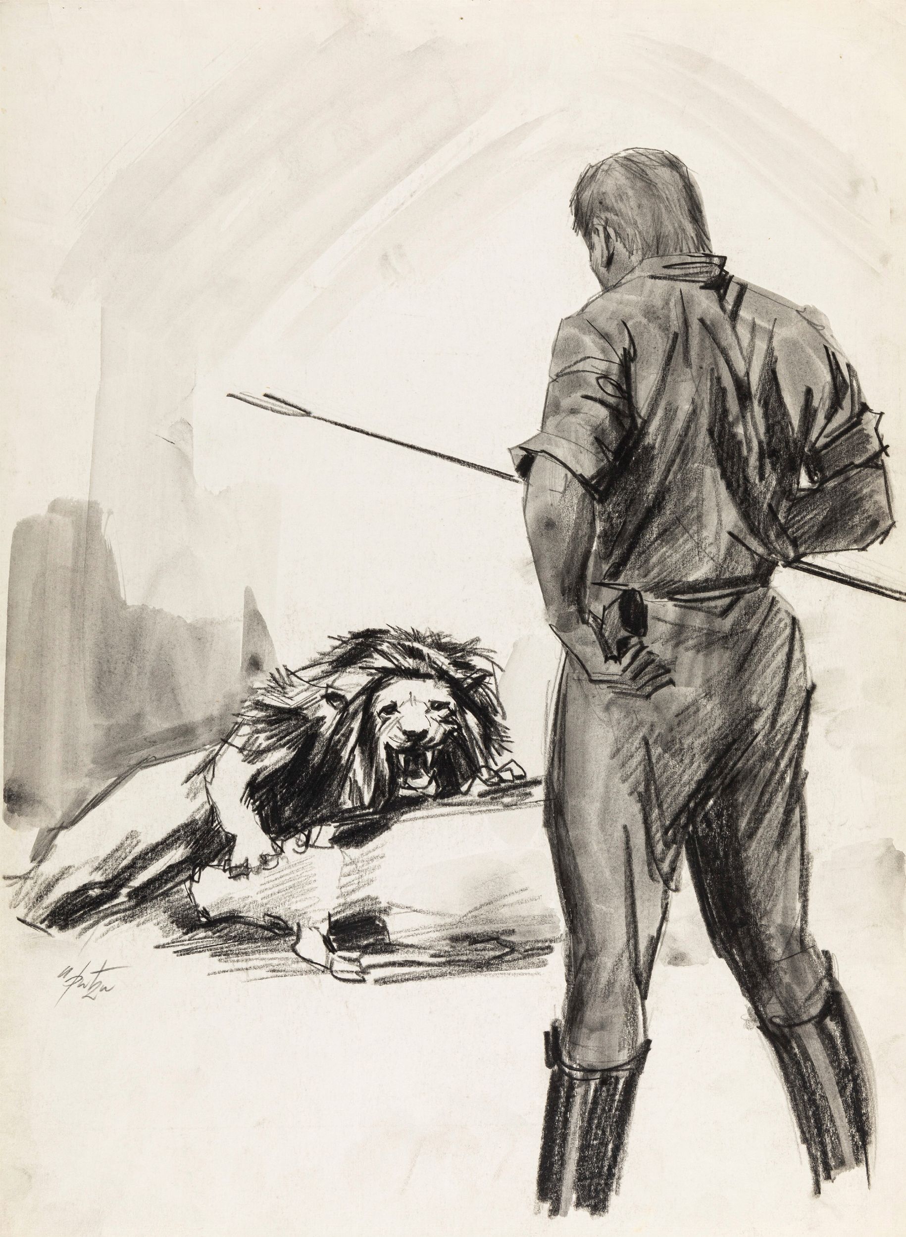 carboncino e acquerello su cartoncino, 35 x 48 cm