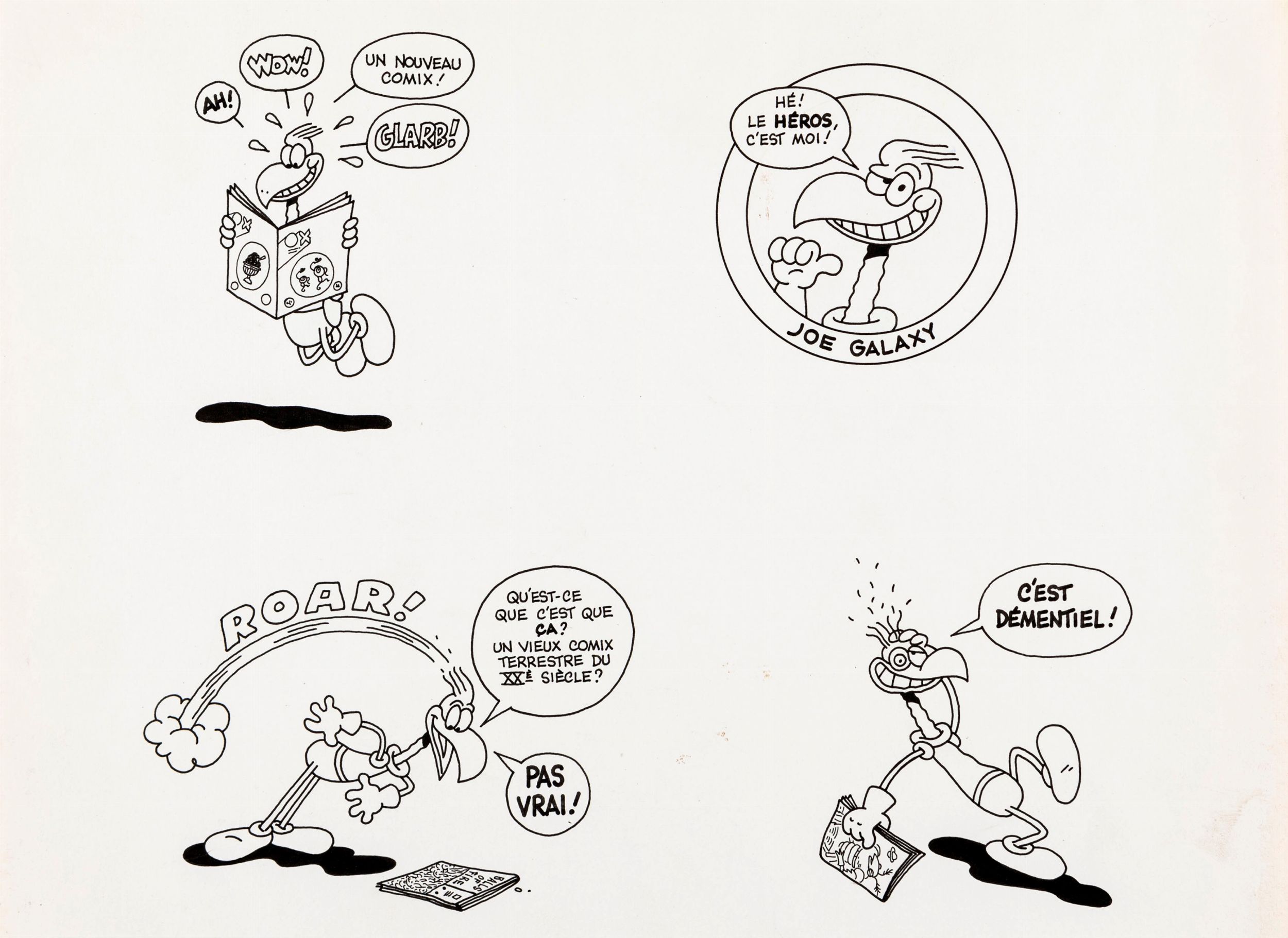 anni 80 Illustrazione originale realizzata da Mattioli nei primi anni '80 per il lancio pubblicitario del suo Joe Galaxy sul mercato francese.