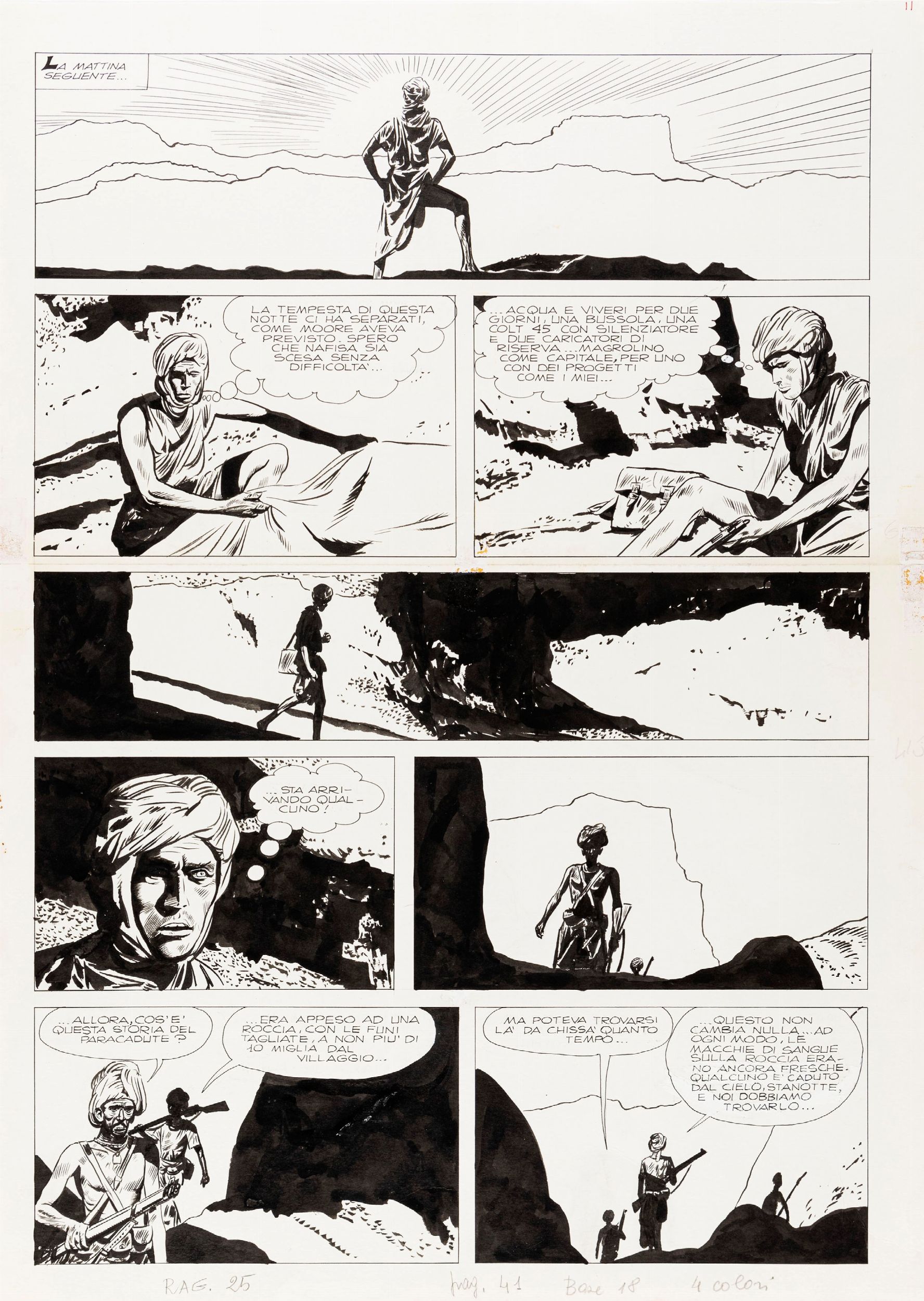 1974 Tavola originale realizzata da Micheluzzi per 'Il popolo della montagna', pag. 11 di questa avventura di Johnny Focus edita per la prima volta sulle pagine del CdR n. 25 nel 1974. Su due pannelli.