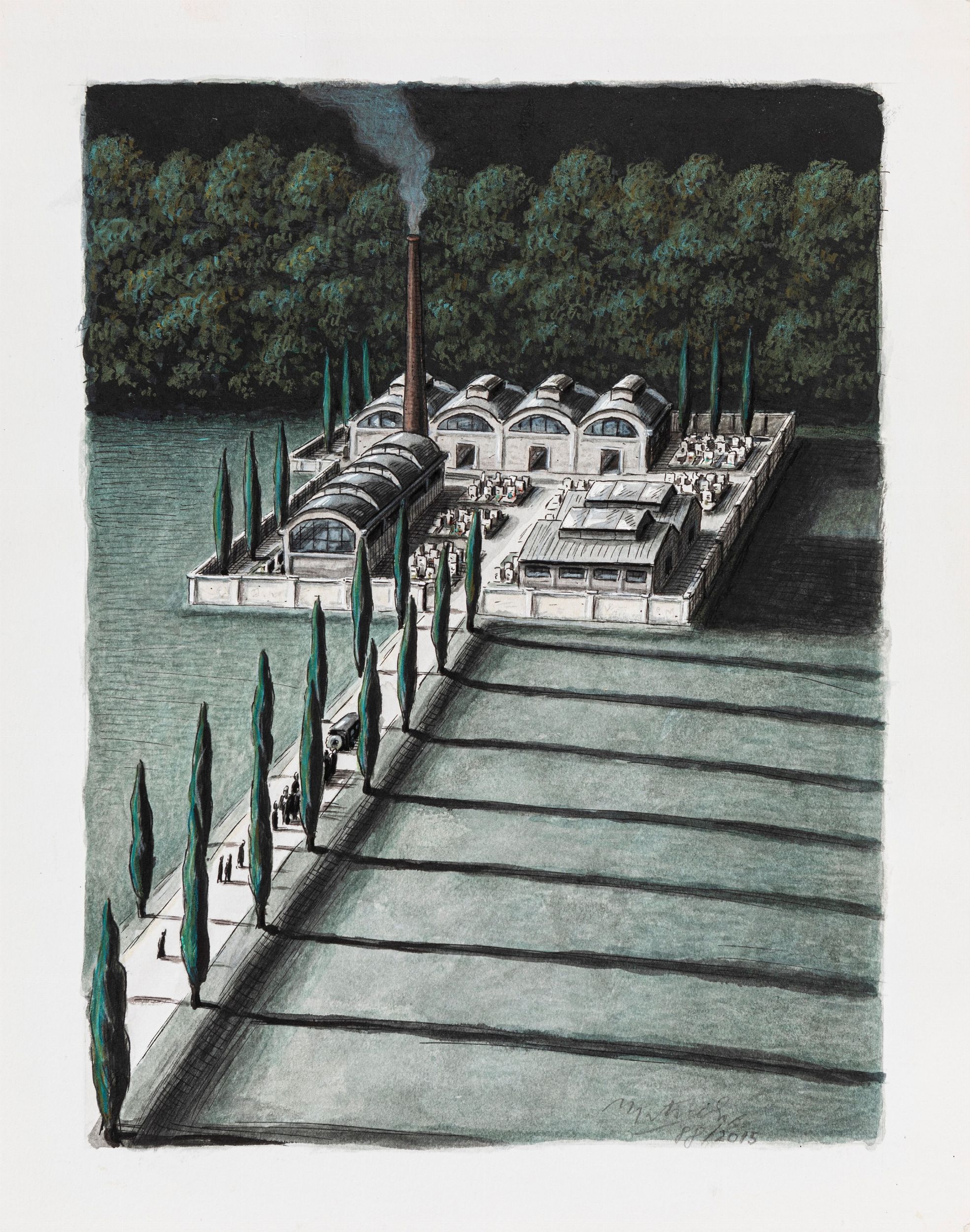 matita, china e acquerello su cartoncino, 25 x 31,5 cm 1988 Illustrazione originale realizzata da Matticchio nel 1988, pubblicata successivamente sull'inserto La Lettura del Corriere della Sera il 17 Giugno 2018 e sul catalogo della mostra 'Illustratori: nella collezione Sergio Cereda' a pag. 35, edito dalle Edizioni Il Pennino nel 2018. Tra i più noti e apprezzati illustratori e fumettisti del panorama italiano, Matticchio con le sue illustrazioni giocose e bizzarre riesce a restituire, con delicata maestria, le atmosfere dei suoi maestri dichiarati: Roland Topor e René Magritte. Firmata e datata.