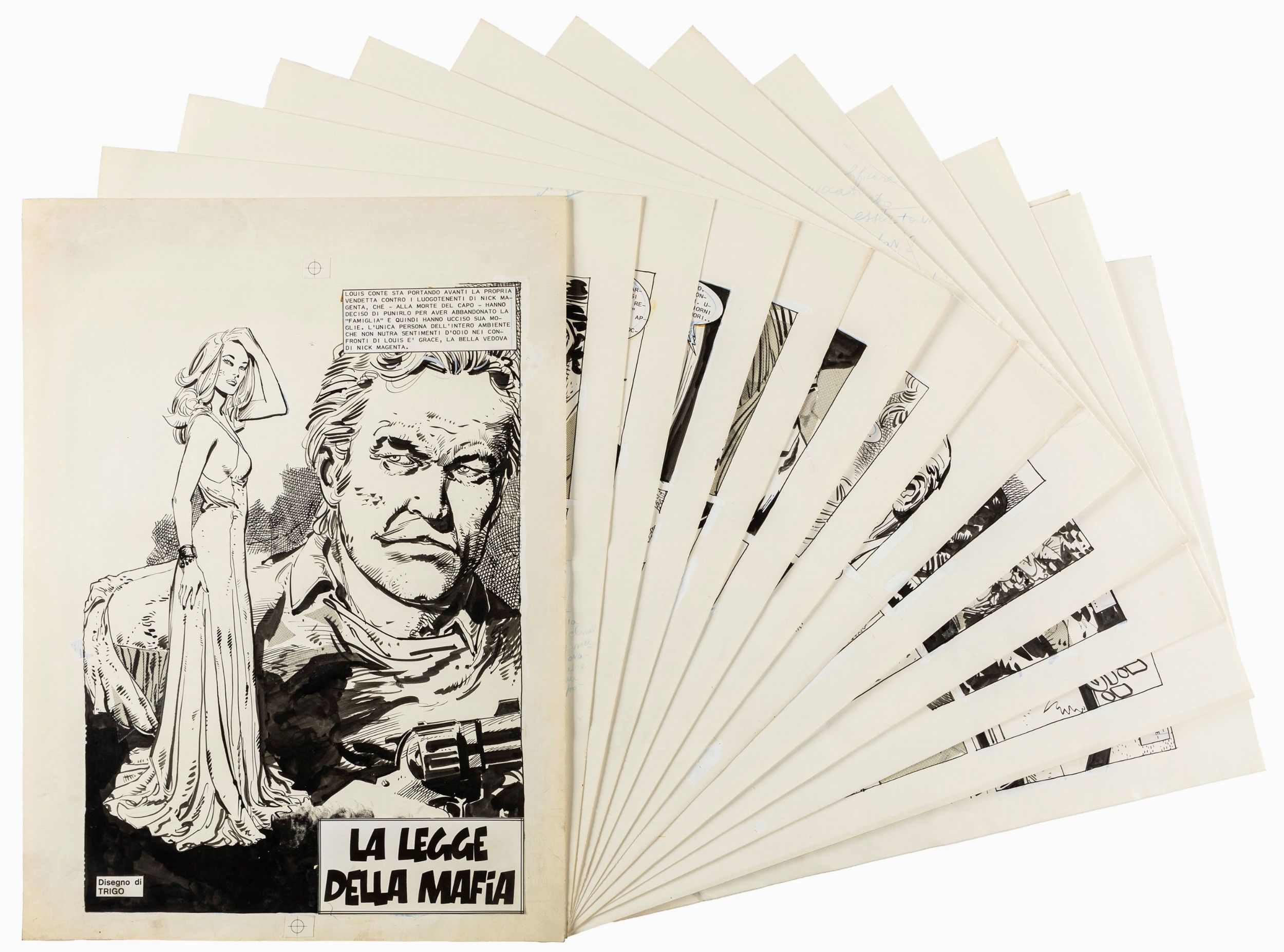 1986 Storia completa composta da 14 tavole originali realizzate da Trigo per 'La legge della mafia', edita su Skorpio n. 35 dalla Eura nel 1986. Testi di Alberto Ongaro.