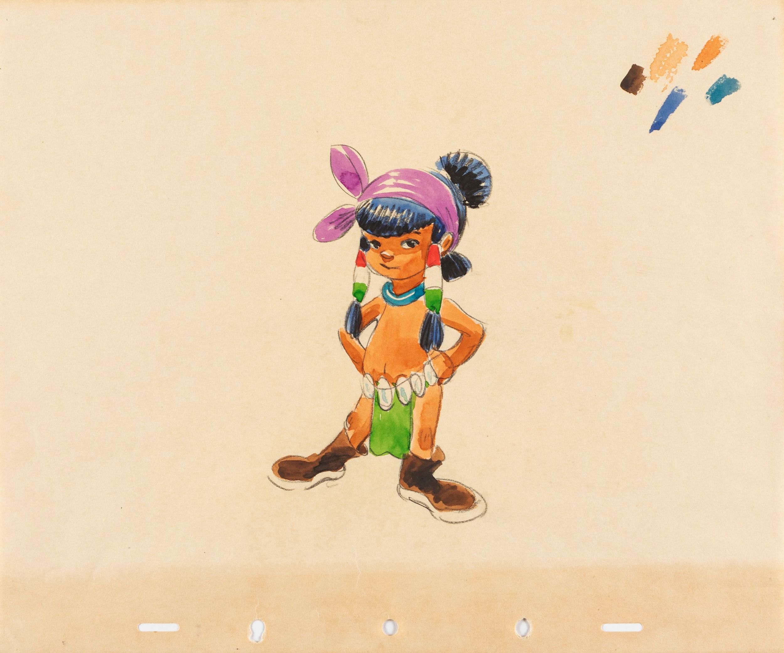 matita e tempera su carta, 30,5 x 25,5 cm ciascuno 1946 Coppia di 2 concept drawing realizzati dall’animatrice Retta Scott a metà anni ’40 per l’indianina Tumai e altre bimbe native americane per il lungometraggio Disney 'On the Trail', rimasto inedito e mai prodotto. Lievi pieghe.