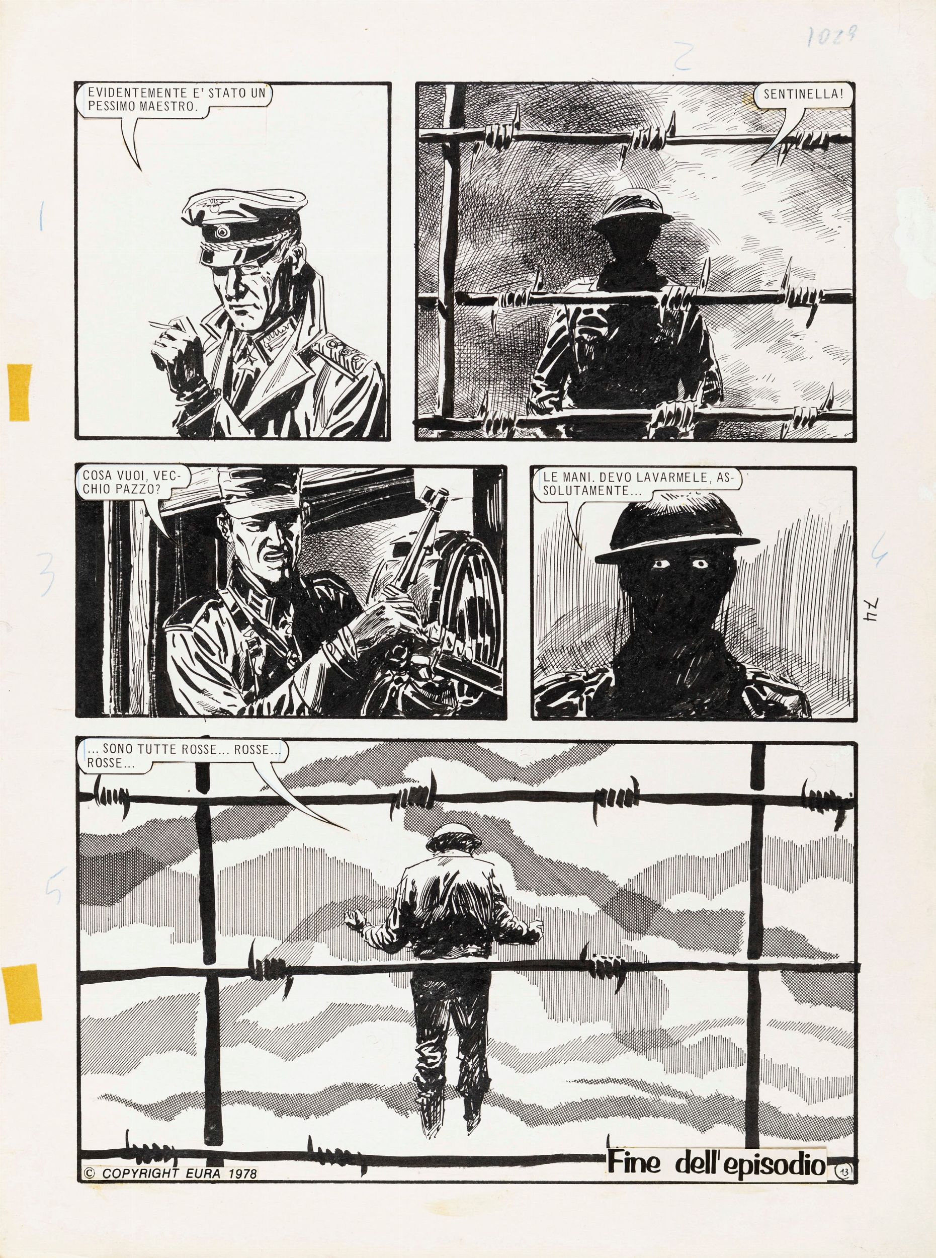1978 Tavola originale realizzata da Alcatena per la pag. 13 di 'Manos rojas', quinto capitolo della serie 'Press' edita su Lanciostory n. 43 del 1978.