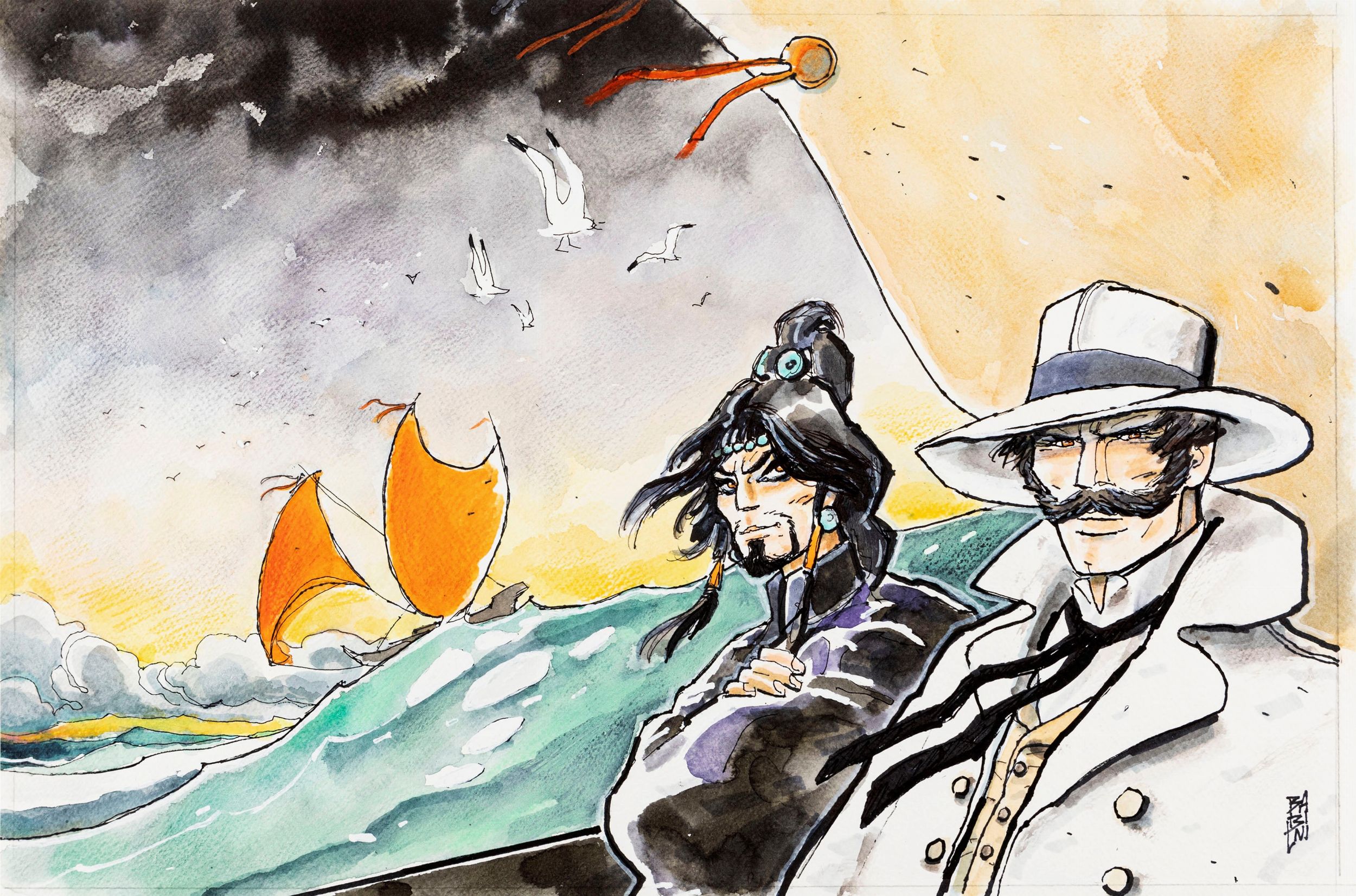 2012 Illustrazione originale realizzata da Babini come omaggio al 'Sandokan' di Hugo Pratt. Firmata al fronte, firmata e datata al retro.