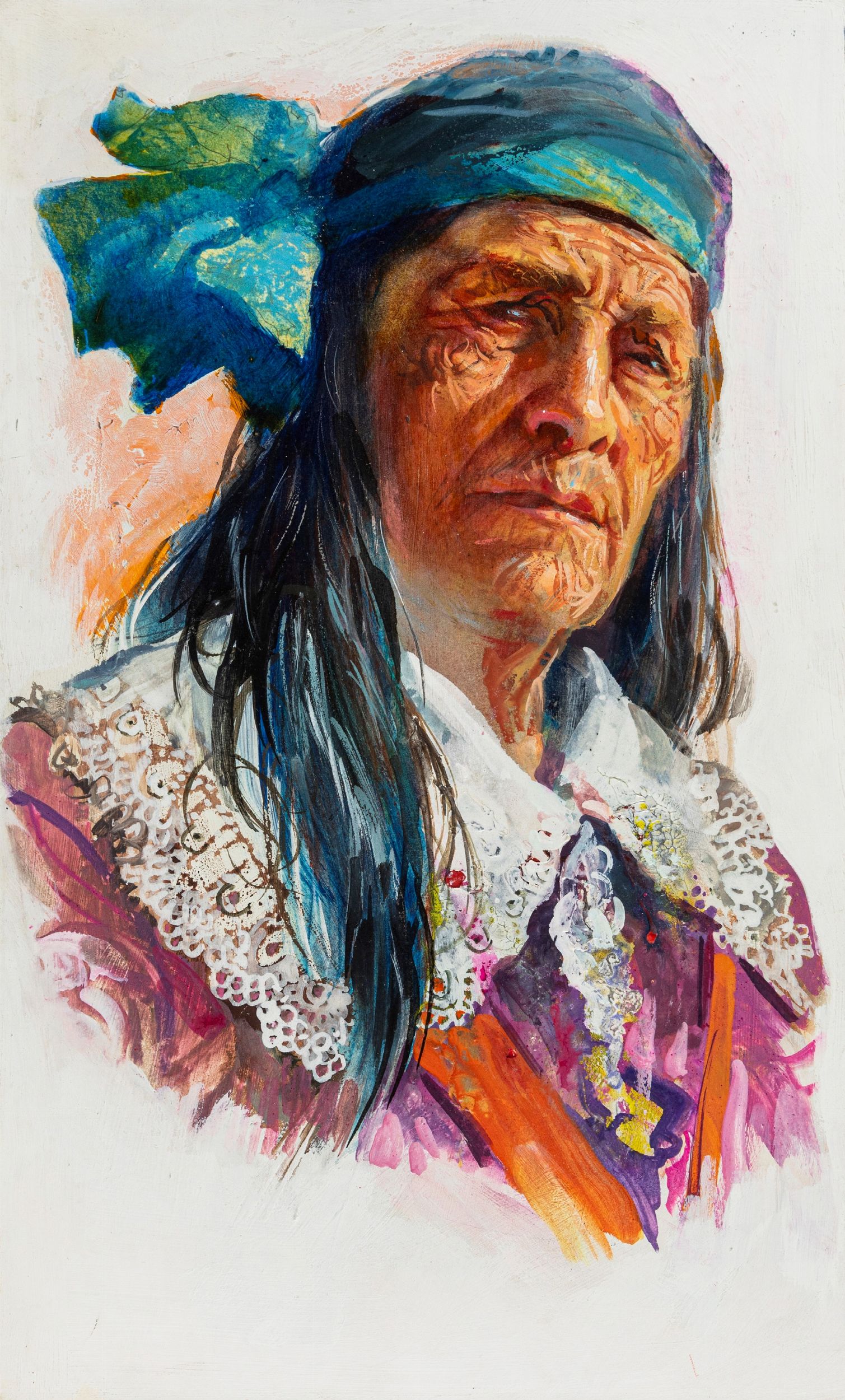1976 Illustrazione originale realizzata a quattro mani da De Gaspari e Tempesti per la figurina n. 99 raffigurante il Popè lo stregone, edita sull'album 'West' dalla Panini nel 1976.