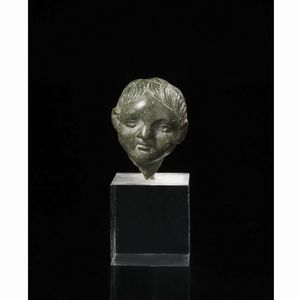 TESTINA DEL DIO PTAH In pietra calcarea H. 2,7 cm. Egitto, Periodo Tardo, VII - IV secolo a.C.   [..]
