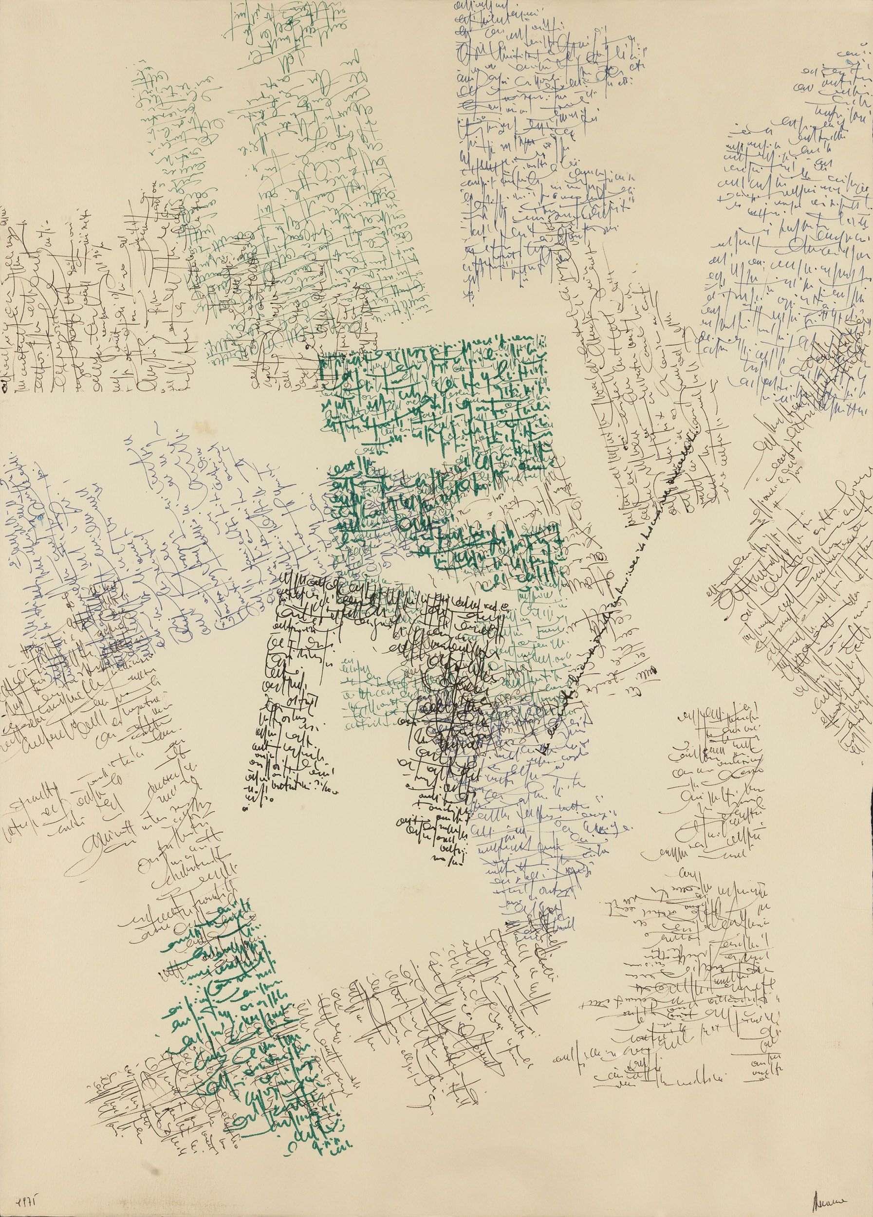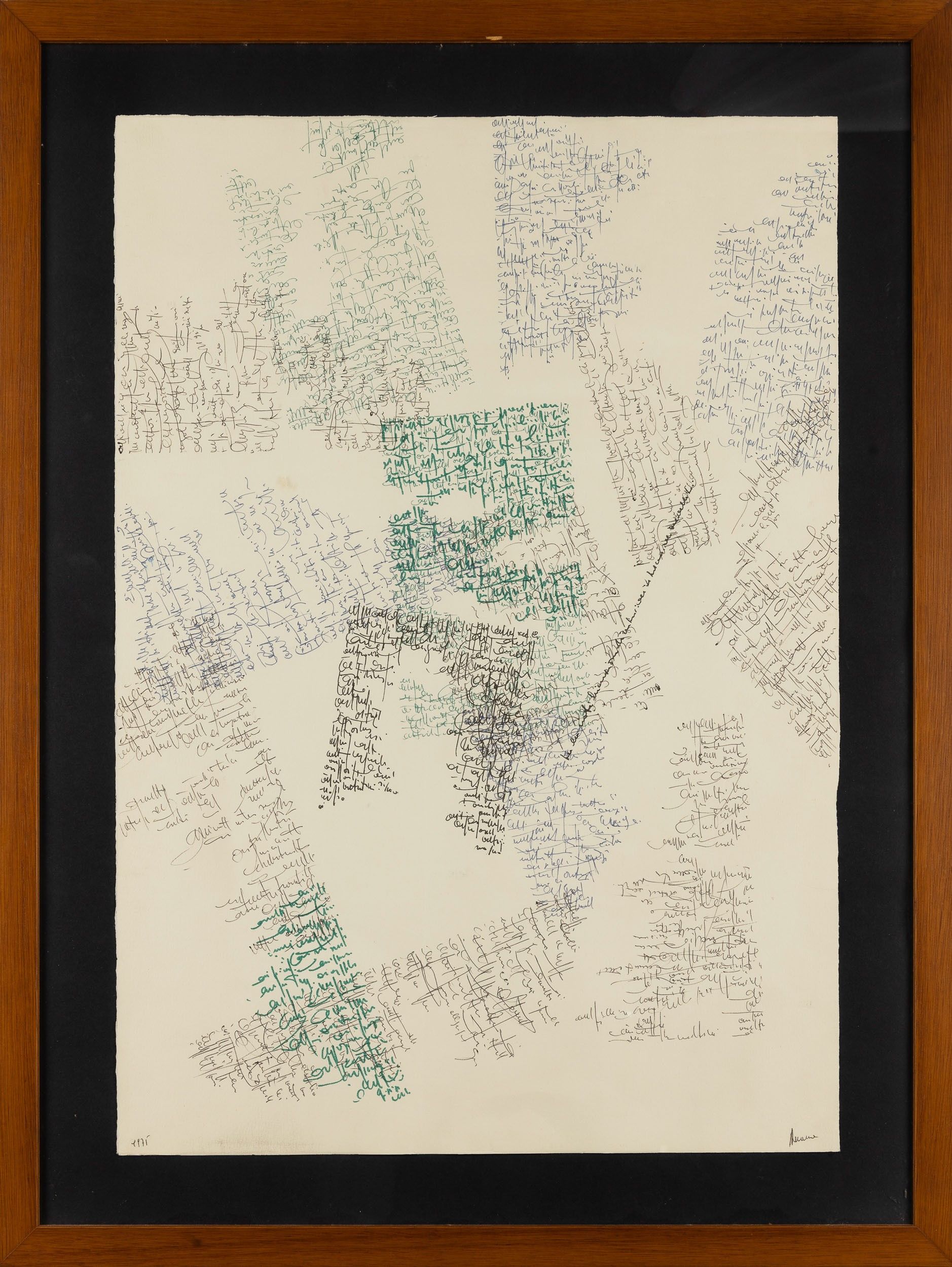 penna e penne colorate su carta, Largh. 35 - Alt. 50,5 cm