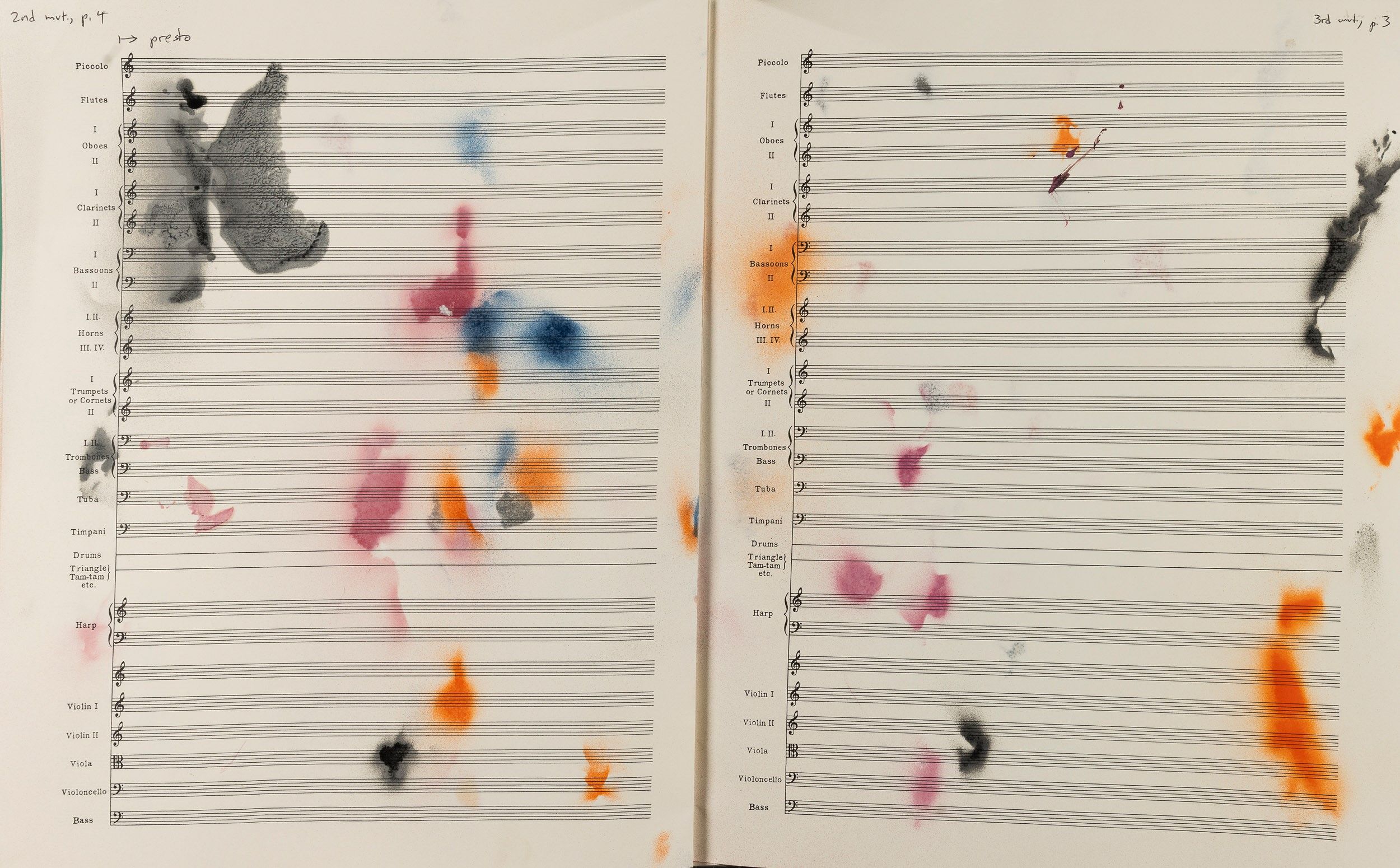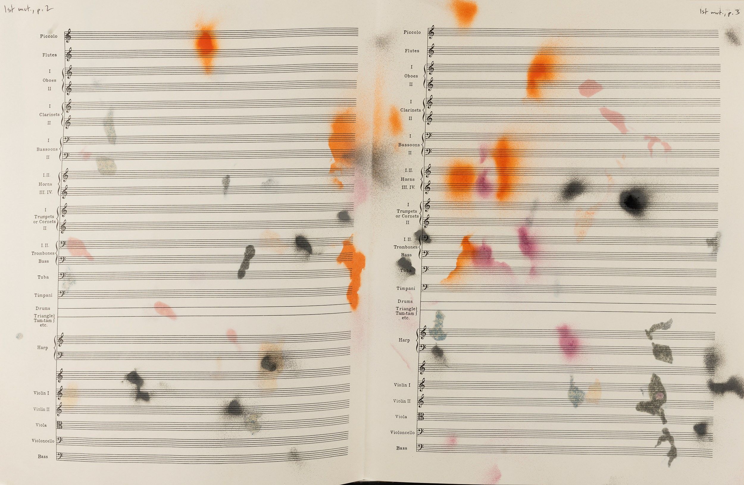 tecnica mista su spartito musicale, Largh. 55,5 - Alt. 35 cm