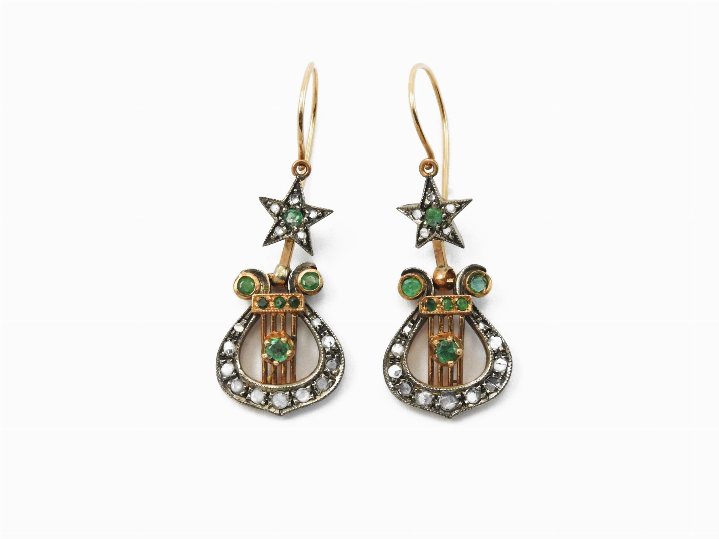Orecchinii pendenti in oro rosa 500/1000 ed argento con diamanti e smeraldi