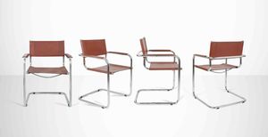 Acciaio e pelle, 83 x 55 x 55 cm 1970s Set di 4 sedie vintage S34 Cognac Italia Buone condizioni, usura coerente [..]