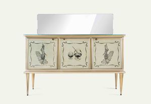 Legno, alluminio, 135H x 155L x 50D cm 1950s Buffet di Umberto Mascagni con specchio incassato. Italia anni '50. [..]