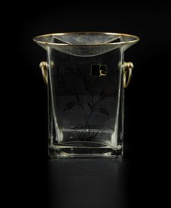 Contenitore per ghiaccio d'epoca in vetro e ottone