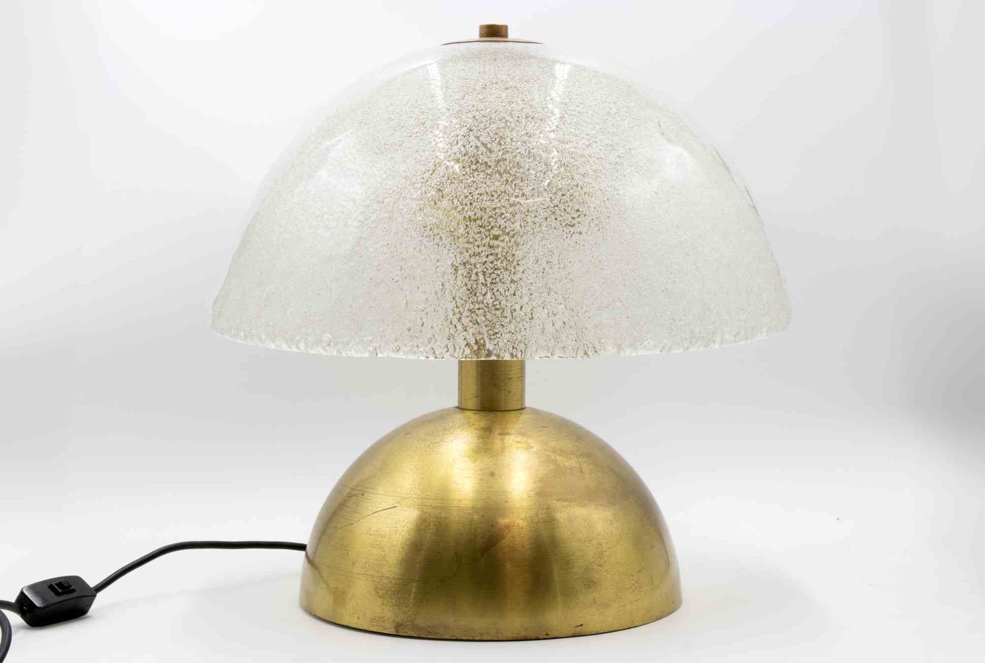 1950s Lampada da tavolo vintage di Angelo Brotto, realizzata in Italia negli anni '50. Ottone e vetro. Ottime condizioni di funzionamento.