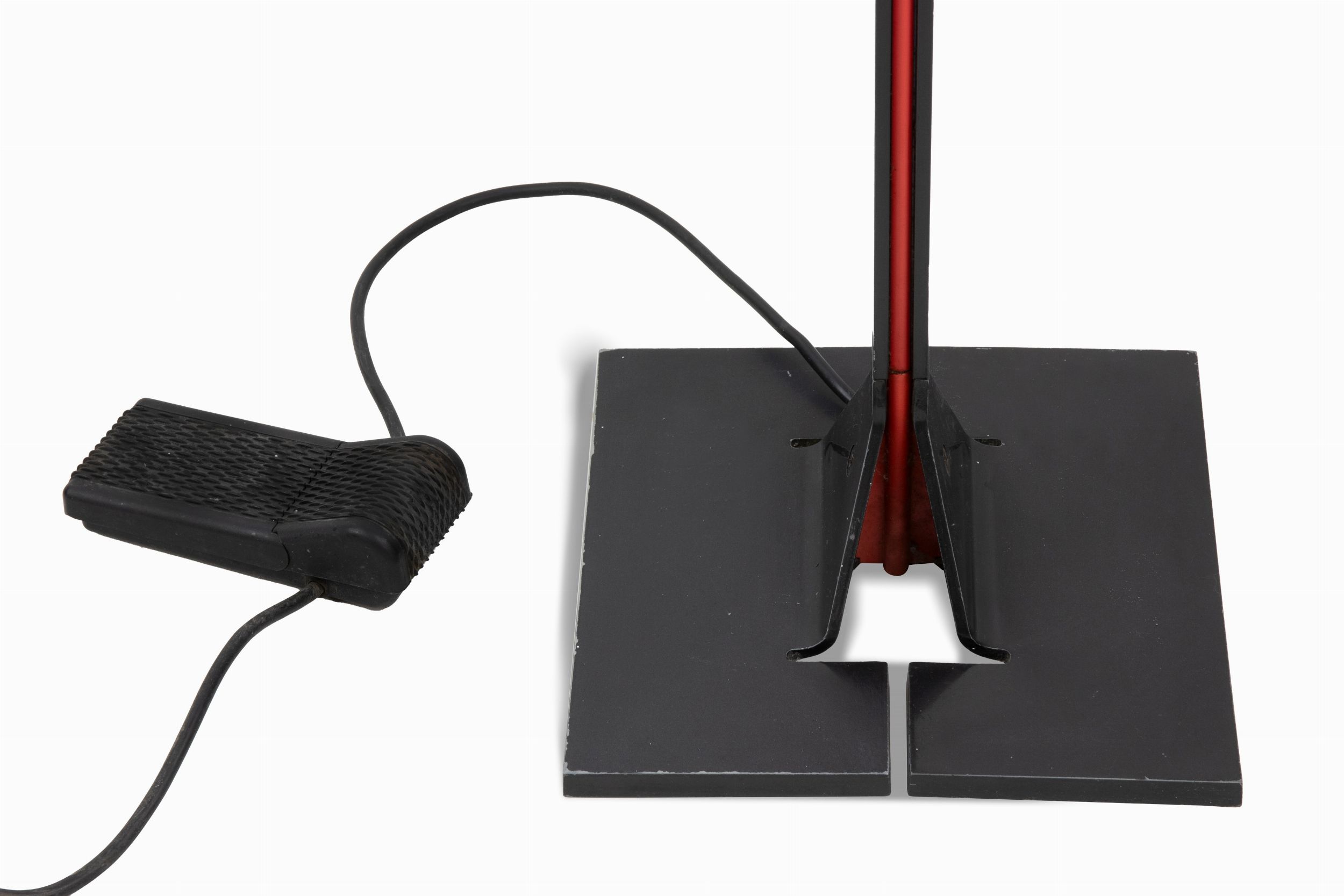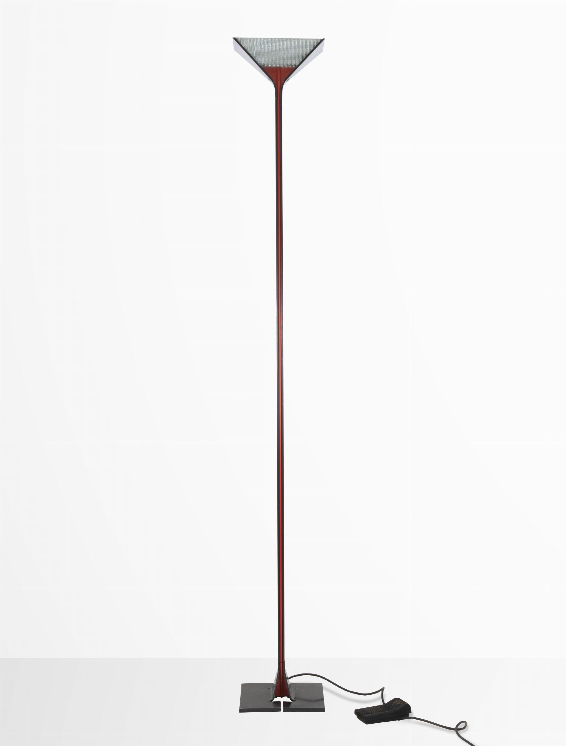 1980s Struttura in metallo laccato nero e rosso e luce di copertura in vetro goffrato.Afra Bianchin (1937-2011) e suo marito Tobia Scarpa (1935-) sono una famosa coppia di architetti e designer italiani. I loro prodotti si trovano in molti musei di tutto il mondo, tra cui il MoMa e il Louvre. Sono stati autori di importanti progetti di restauro e dal 1966 hanno curato l'arredamento dei negozi di note aziende italiane tra cui Benetton, C&B, Geox e Unifor, Knoll, B&B Italia. Hanno vinto numerosi premi come il Compasso d'Oro nel 1969 e l'International Forum Design nel 1992. Il loro lavoro di design consiste nell'architettura e negli oggetti di uso quotidiano, tra cui mobili, abbigliamento e vetro artistico.