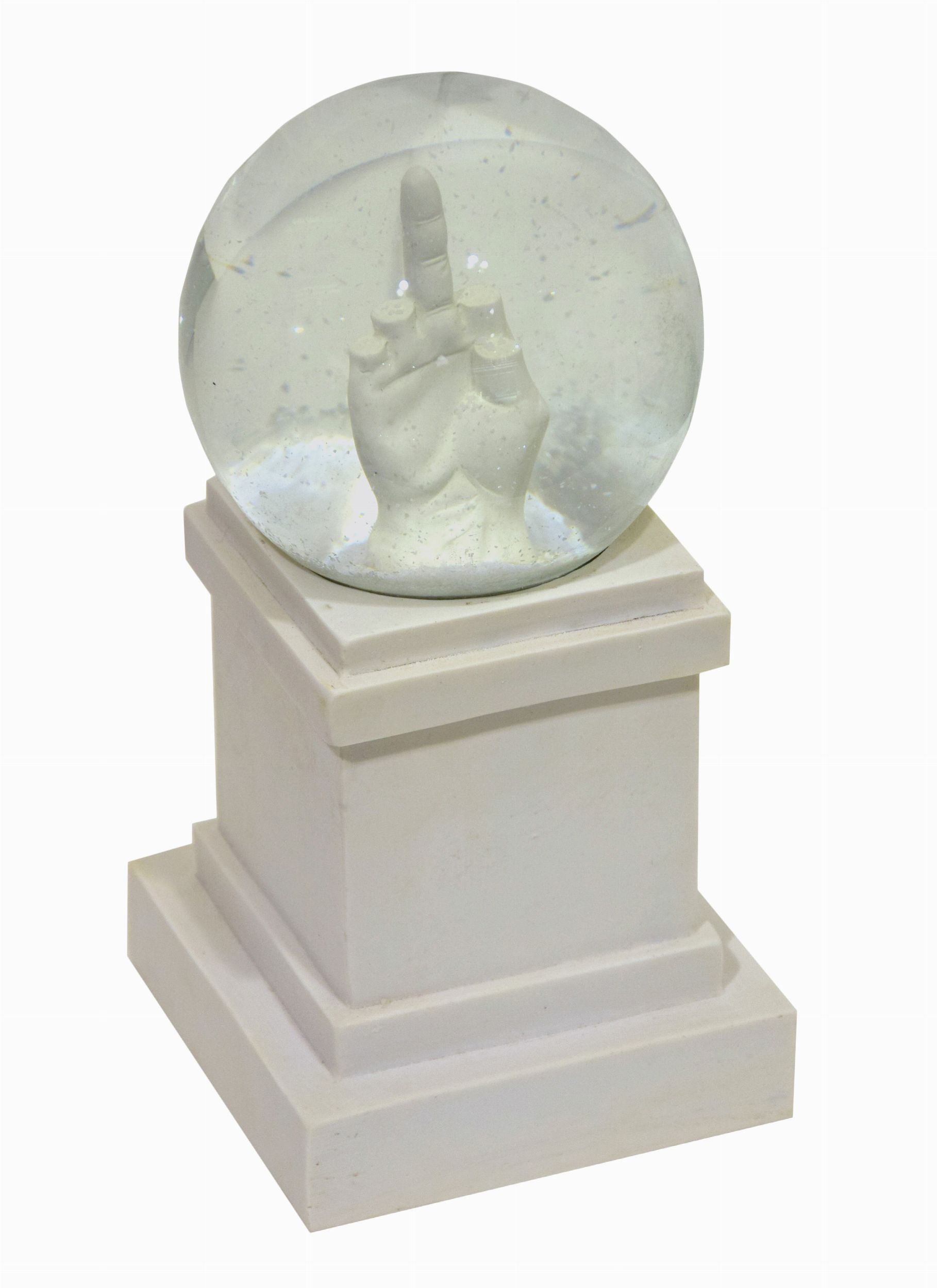 Vetro e resina, 25 x 12,3 x 12,3 cm 2014 Palla di neve L.O.V.E. Riproduzione dell'opera monumetale di Maurizio Cattelan in Piazza Affari a Milano. Prodotta da Seletti in 2000 pezzi in occasione della settimana della moda di Milano 2014. Edizione esaurita. L'opera è accompagnata dalla confezione originale.