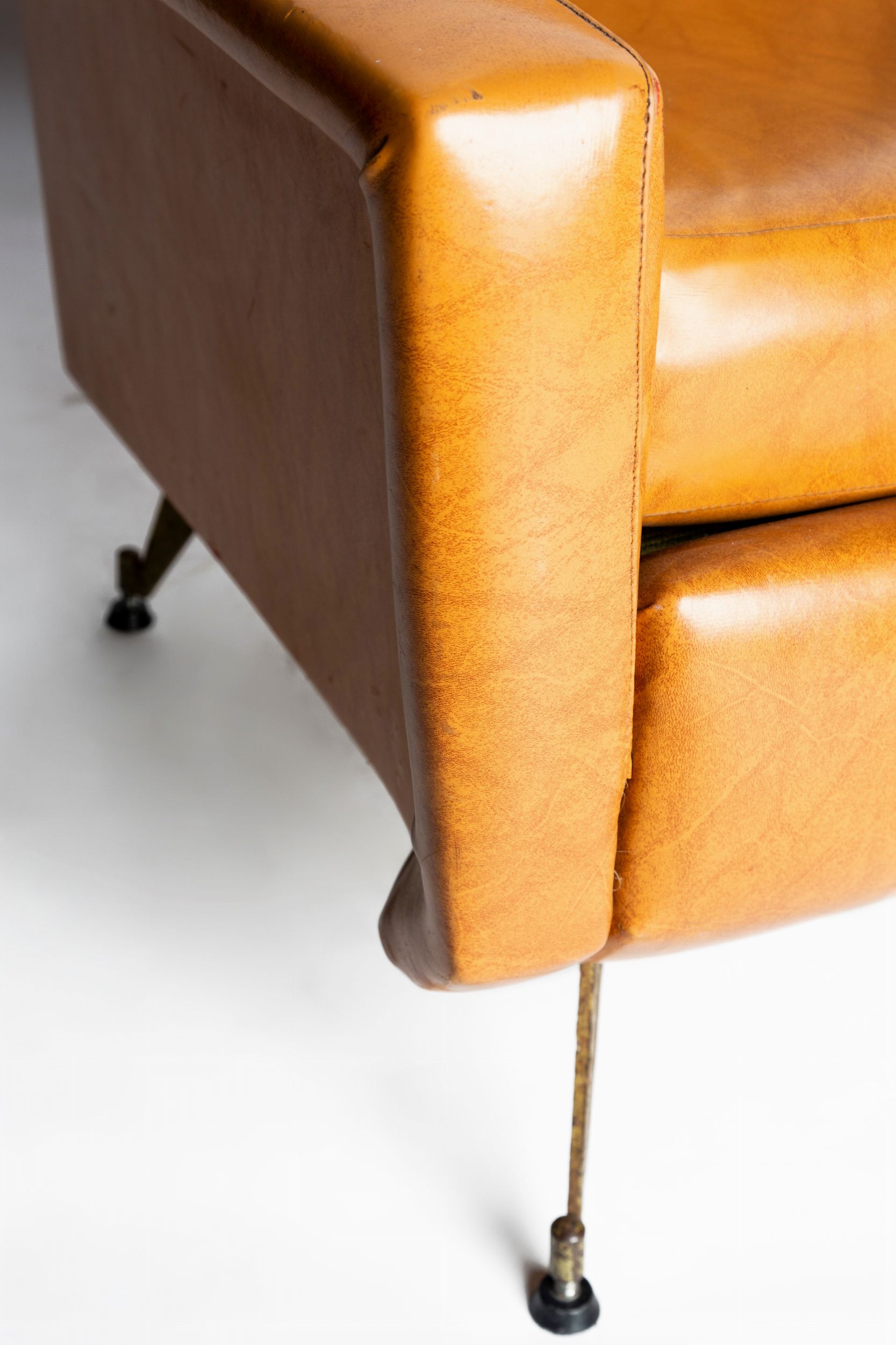 Poltrona in finta pelle con gambe in ottone, 60 x 50 x 50 cm