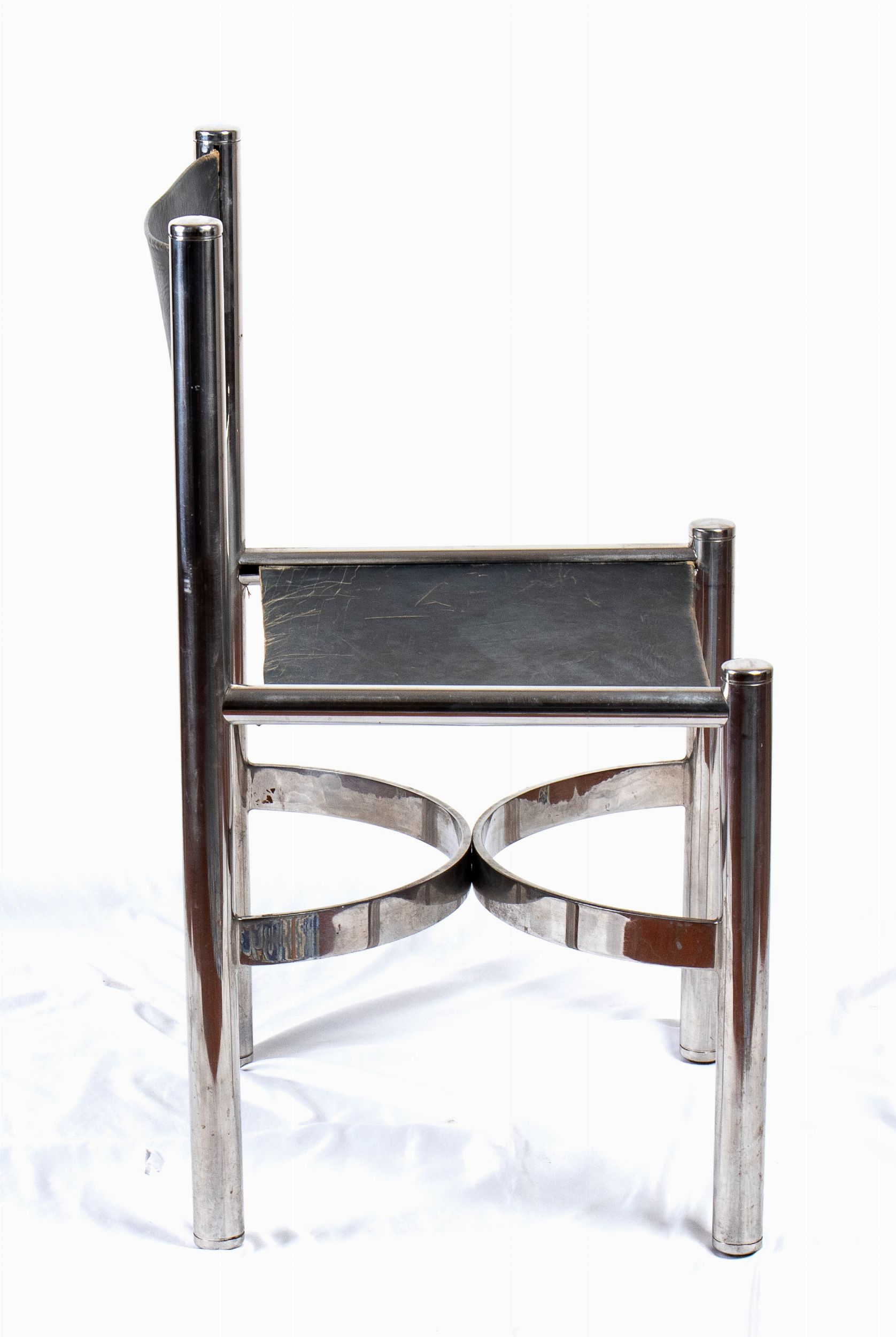 Anni '70 del XX secolo Set di 4 sedie in acciaio e pelle firmate, Dada industrial design degli anni 70.