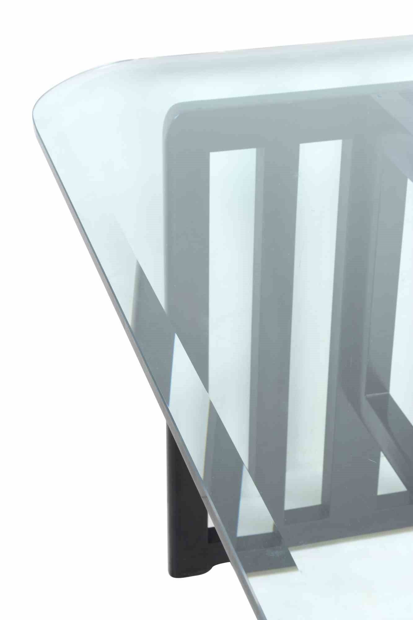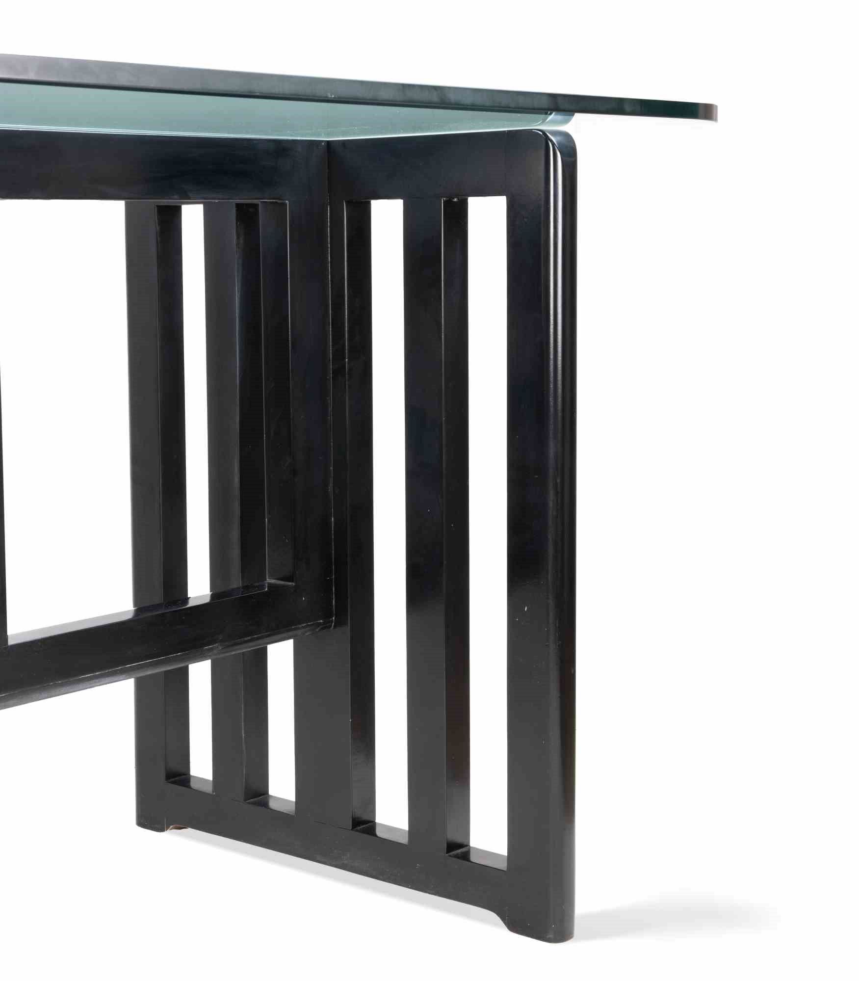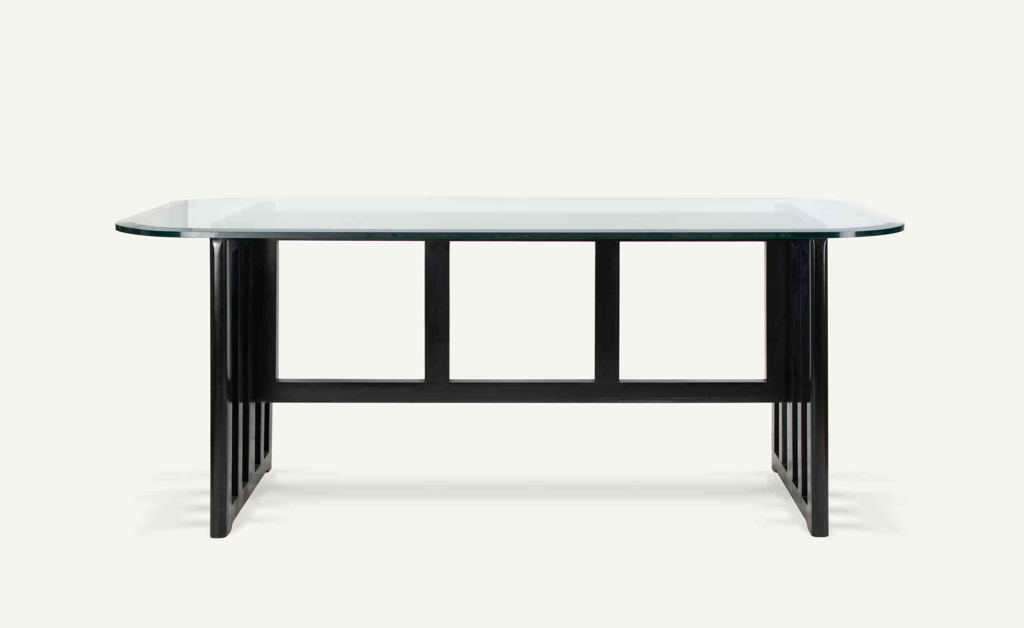 1970s Legno laccato e magnifico tavolo in cristallo tagliato. Profondità del cristallo: 1,6 cm. Ottime condizioni.