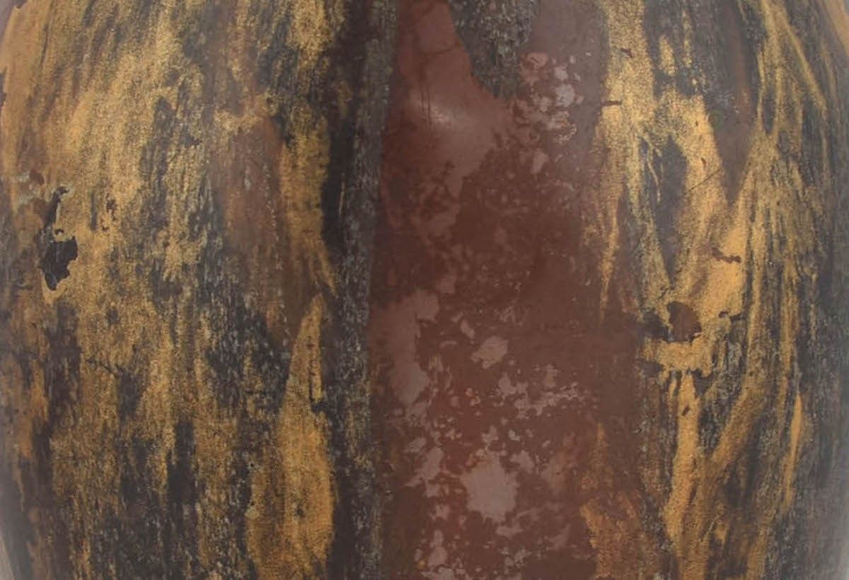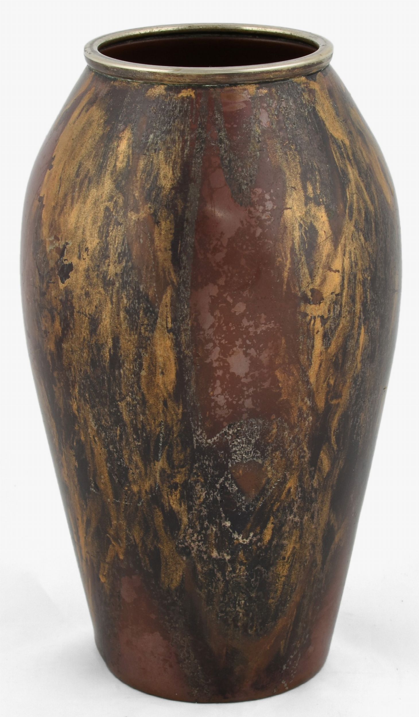 Originale in rame intagliato con decorazione a spugnatura in argento e oro.