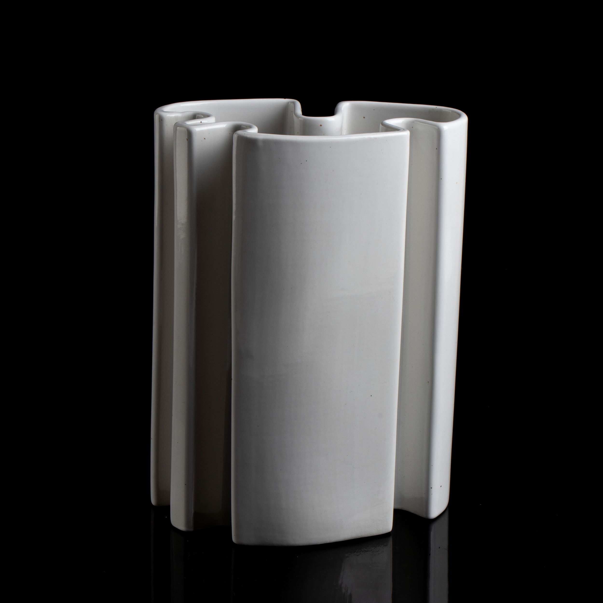 Vaso in vitreous china di colore bianco, disegnato da Angelo Mangiarotti per Brambilla. Riedizione degli anni '80. Condizioni: ottime