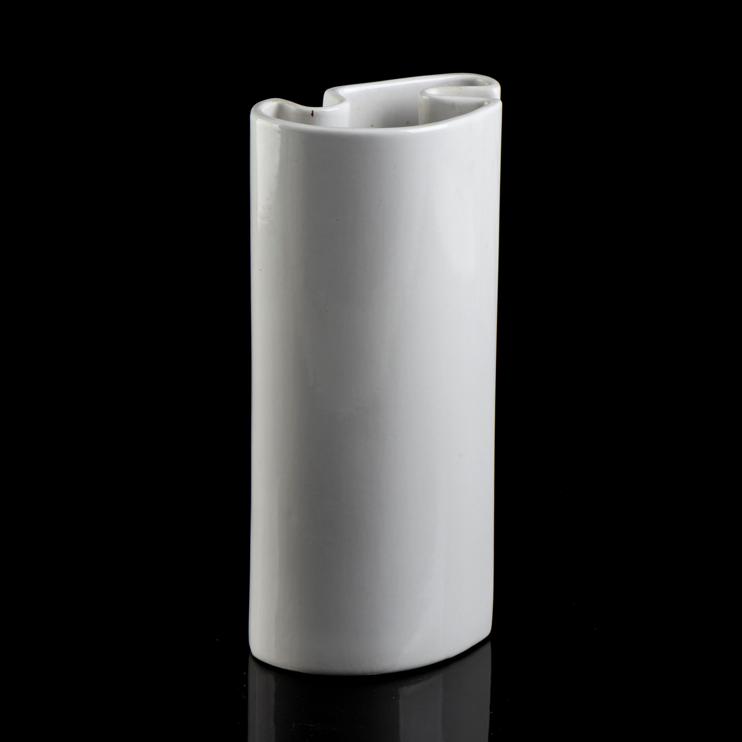 Vaso in vitreous china di colore bianco, disegnato da Angelo Mangiarotti per Brambilla. Riedizione degli anni '80. Condizioni: ottime