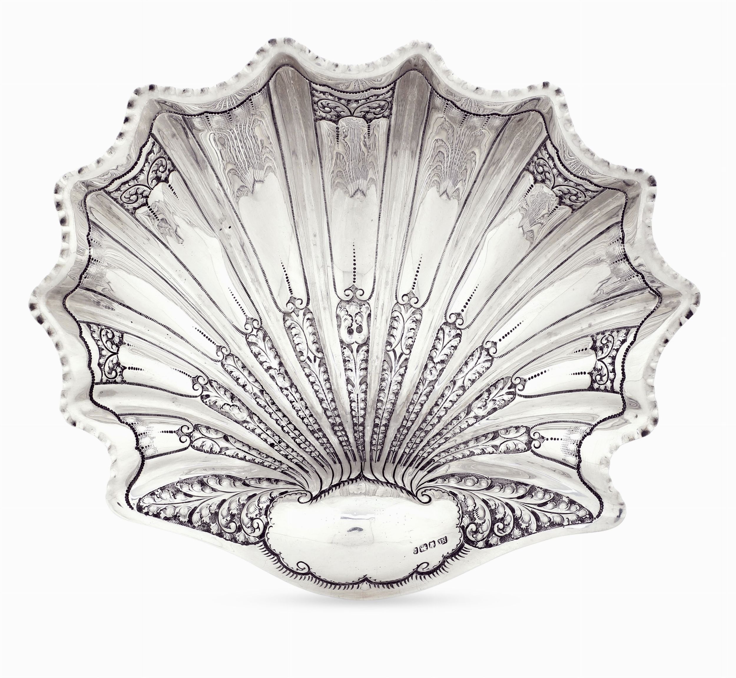 Centrotavola a guisa di conchiglia. Sheffileld 1895, argentiere Atkin Brothers